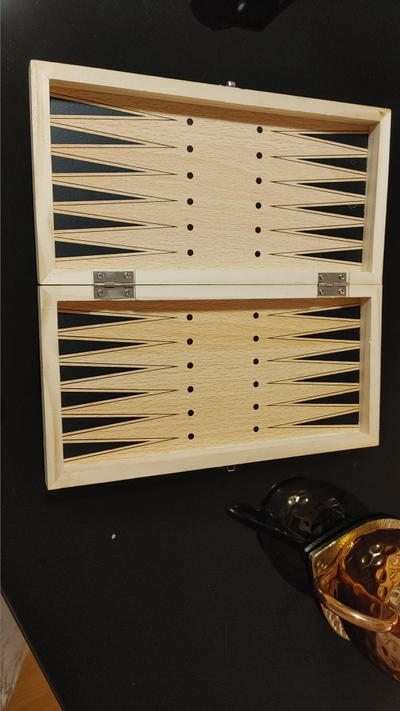 Selling a used chess and backgammon board . It's a wooden that folds up for storage and portability. It shows some signs of wear and tear, as seen in the photos, but is still perfectly functional for playing your favourite games