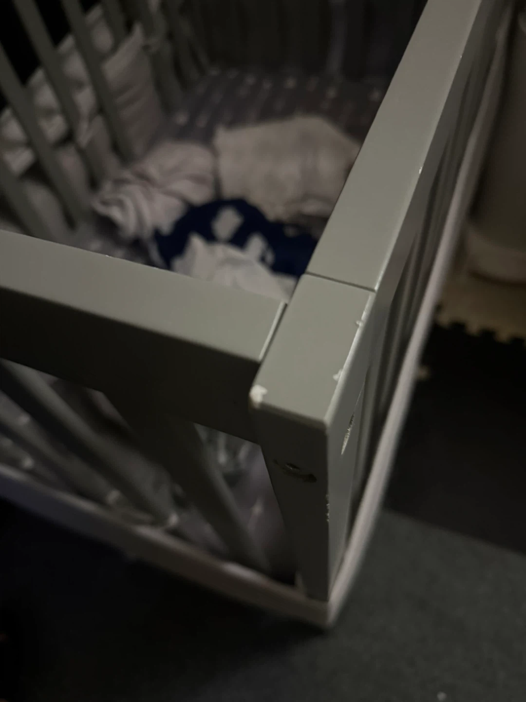 Selling a baby mini crib that’s in good condition, but minor scratches off the paint as pictures shown.