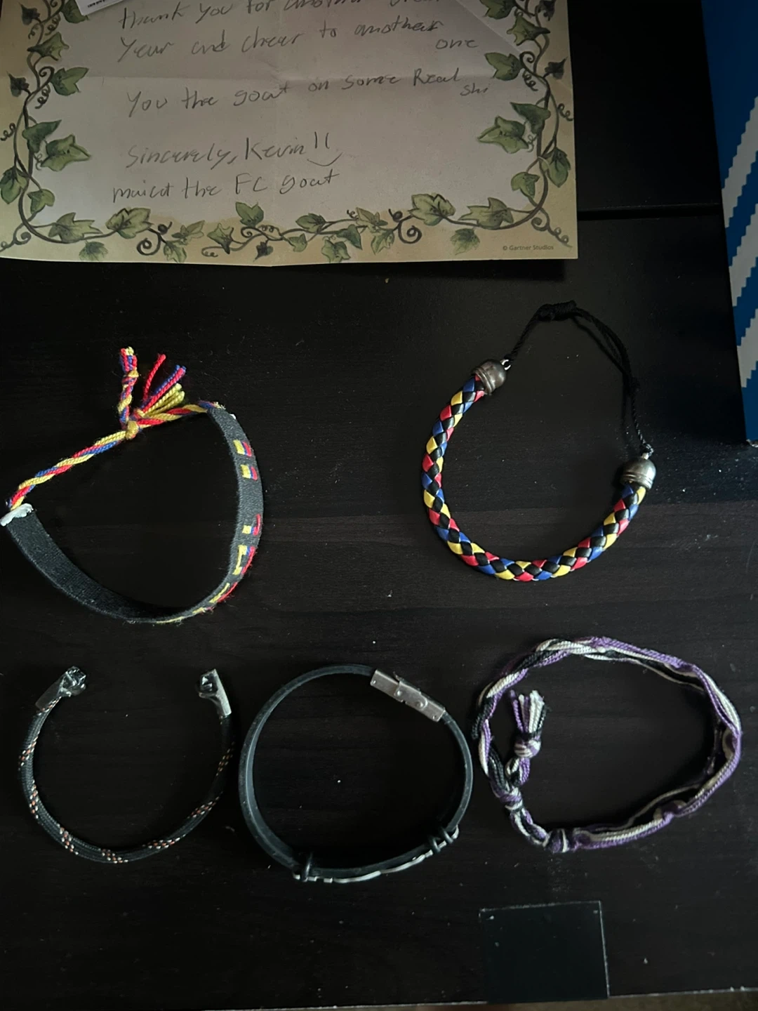 Selling a collection of five assorted handmade bracelets. They're in good condition and ready to accessorize your outfits! Includes a braided leather bracelet, a colourful woven bracelet, and more. Perfect for adding a unique touch to your style