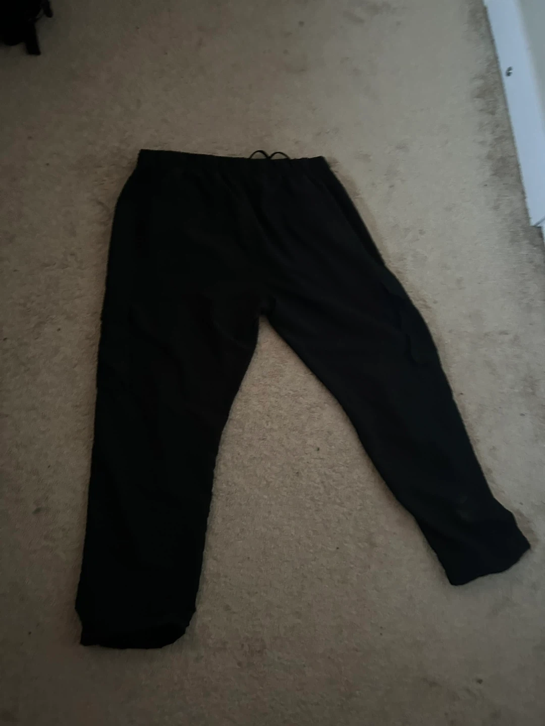 Selling a blue note pair of black cargo pants. They are in good condition with some signs of wear, they only have a dirt spot.