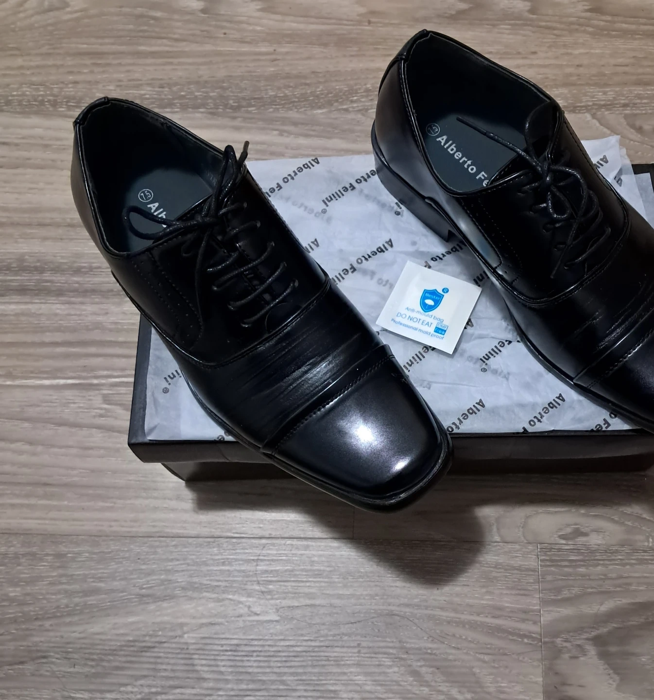 Selling a pair of Alberto Fellini dress shoes in black! They come with the original box.