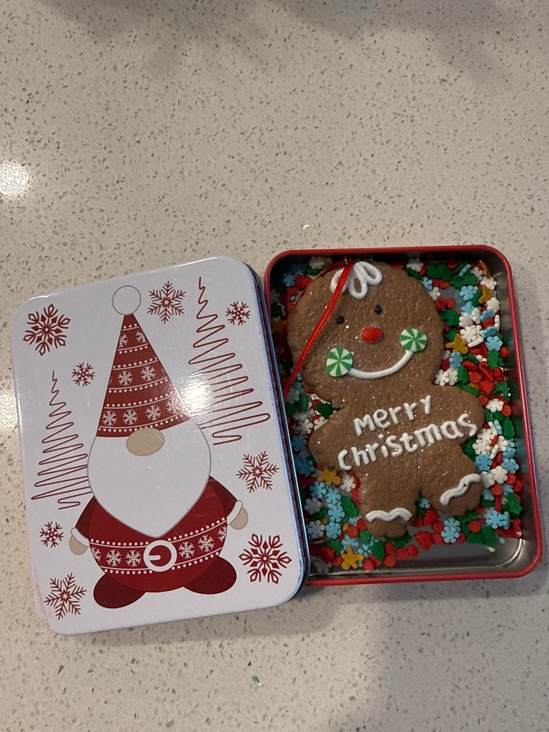 Buy & SellChristmas Gingerbread Cookie in TinChristmas Gingerbread Cookie in Tin$5A festive gingerbread cookie inside a decorative tin, perfect for the holiday gifting! Not edible :)WHERE TO MEETSoftball courtView MapSELLERElnazStation Centennial Park100 reviews0 chats·0 favorites·1 viewsSEND CHAT TO SELLERHi Elnaz! I’m interested in your listing.Hi Elnaz! I’m interested in your listing.Get the Karrot app to chatSign In to chat
