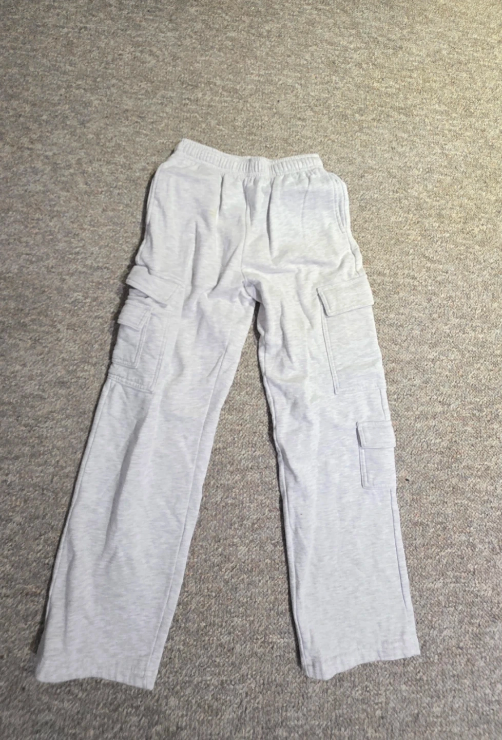 Selling a pair of light grey cargo pants. They're in good condition and have a comfortable fit. Perfect for casual wear or outdoor activities!