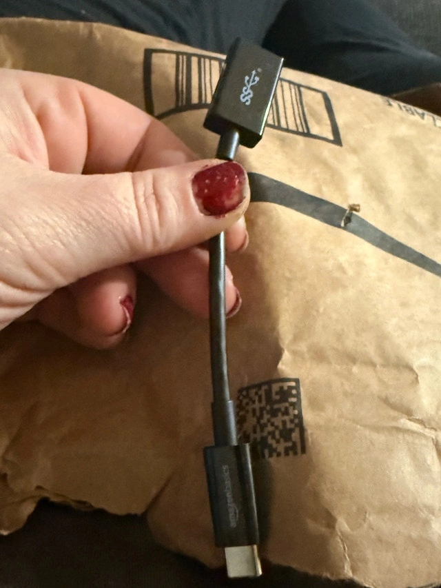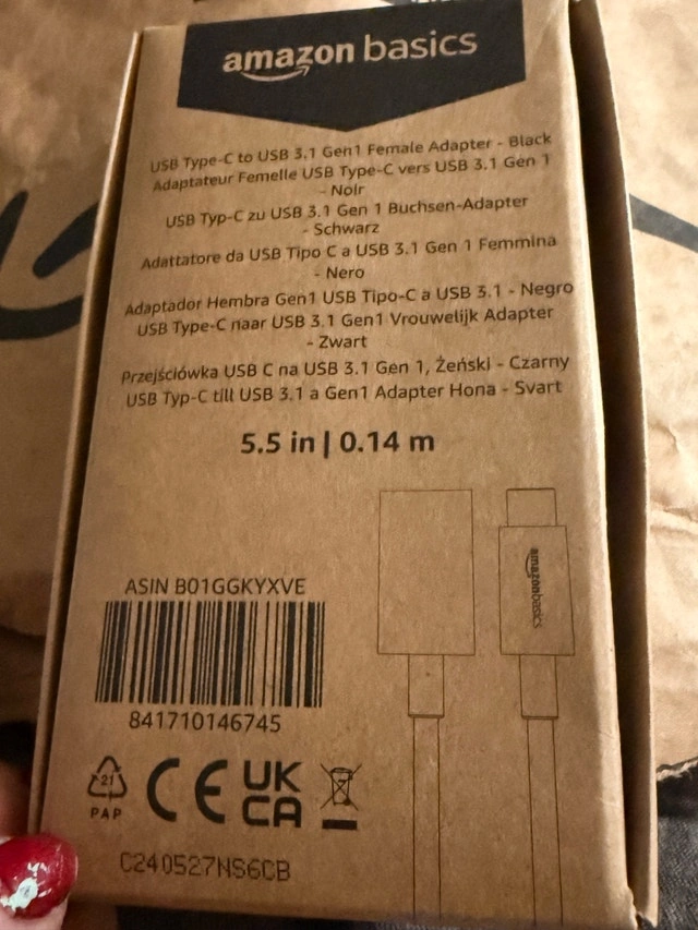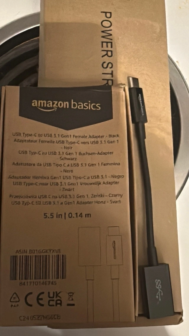 This Amazon Basics USB Type-C to USB 3.1 Gen 1 female adapter is perfect for connecting devices; it is black and 5.5 inches or 0.14 meters. It is used, but in very good condition. 5 available new in box $10 each