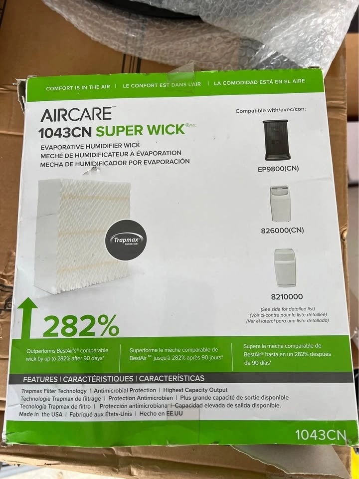 Keep your humidifier running efficiently with the genuine AIRCARE 1043CN Super Wick filter. This OEM filter features Trapmax® filtration and antimicrobial protection to provide clean, moist air and inhibit the growth of mold and bacteria.