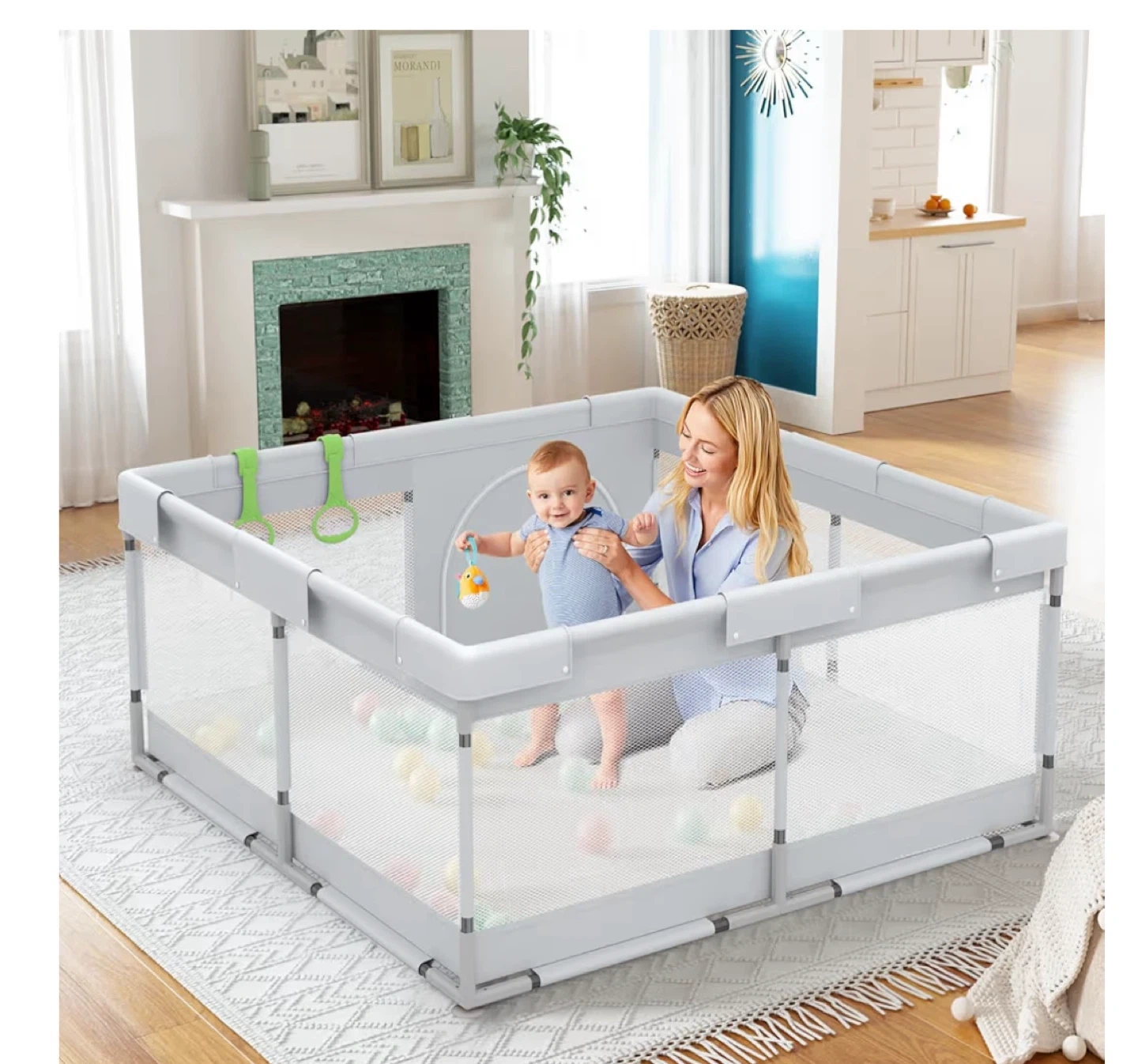 Selling a baby playpen, perfect for keeping your little one safe and entertained! It measures 47x47 inches and 26 inches in height. Includes pulling rings and all the necessary joints and pipes for easy assembly.