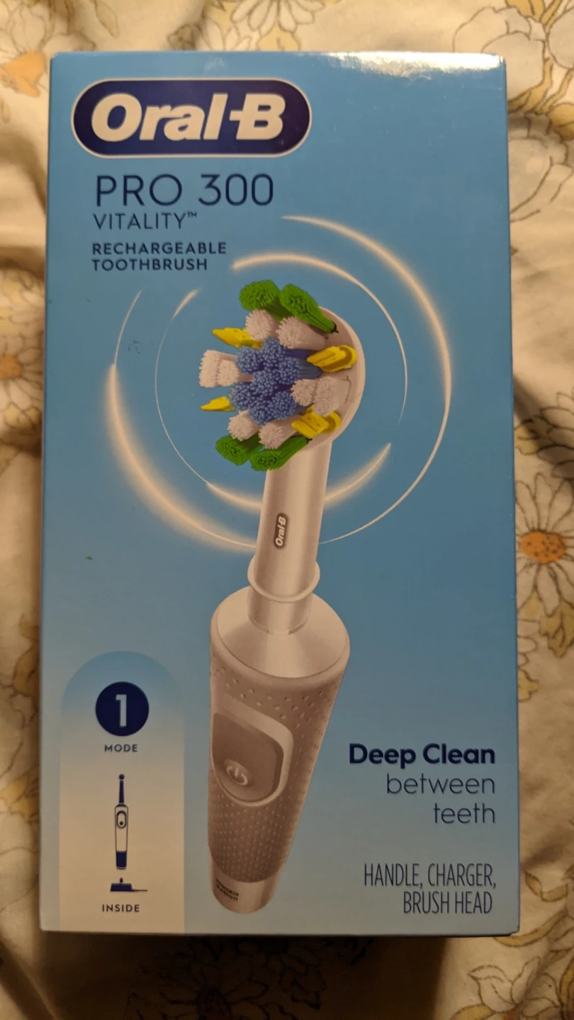 Selling an Oral-B Pro 300 Vitality rechargeable toothbrush! It's designed for a deep clean between teeth and includes the handle, charger, and brush head. Great for keeping your pearly whites in tip-top shape