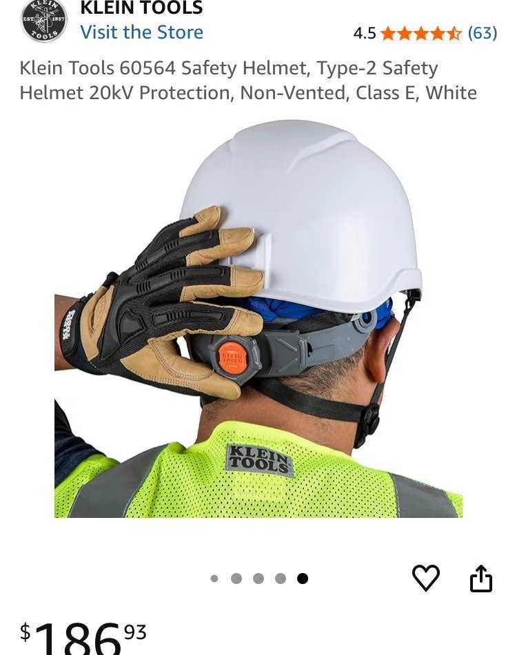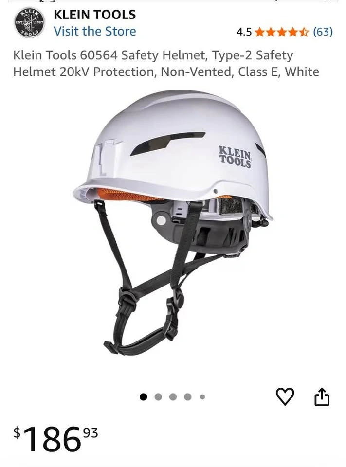Klein Tools Safety Helmet, Type-2 20kV, Class E, White