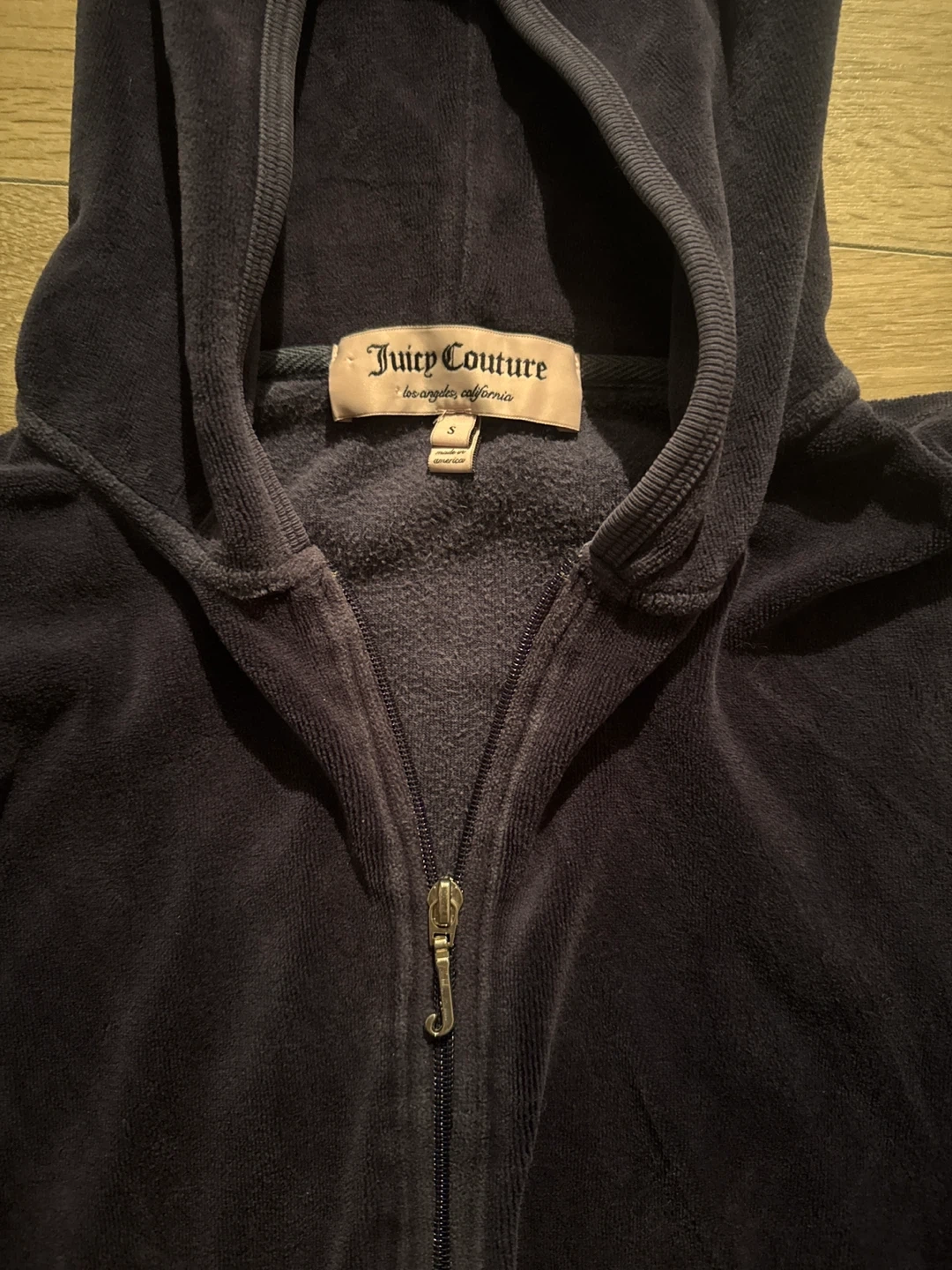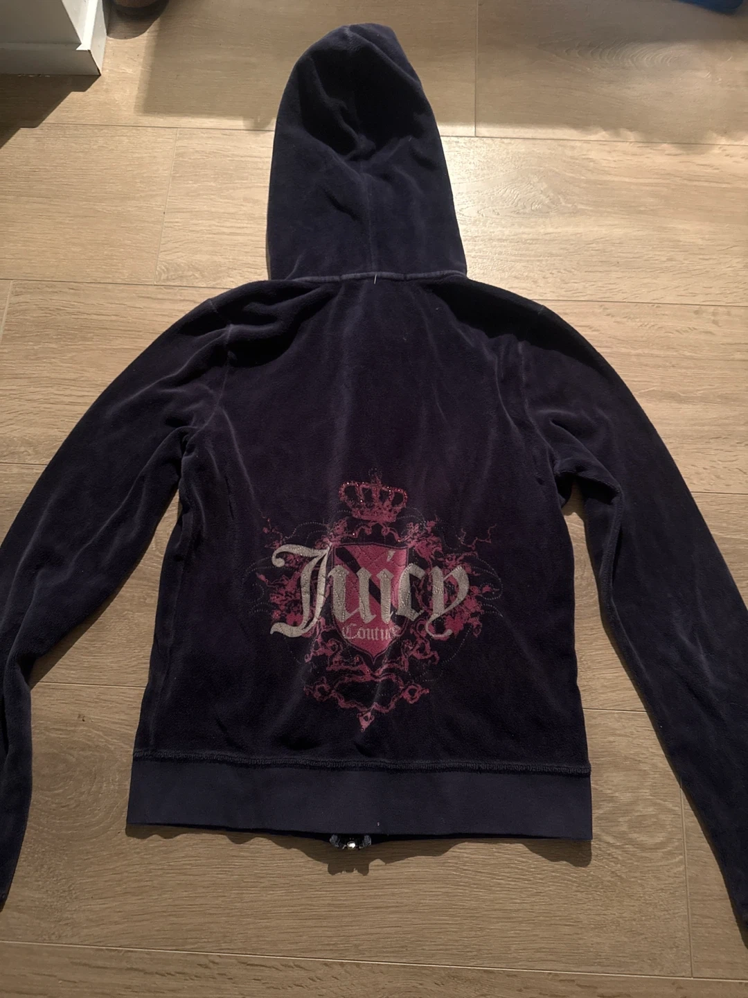 Selling a Juicy Couture velour hoodie in size small. It's a beautiful dark blue colour with the classic Juicy logo on the back. Super comfy and in great condition.