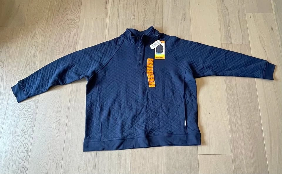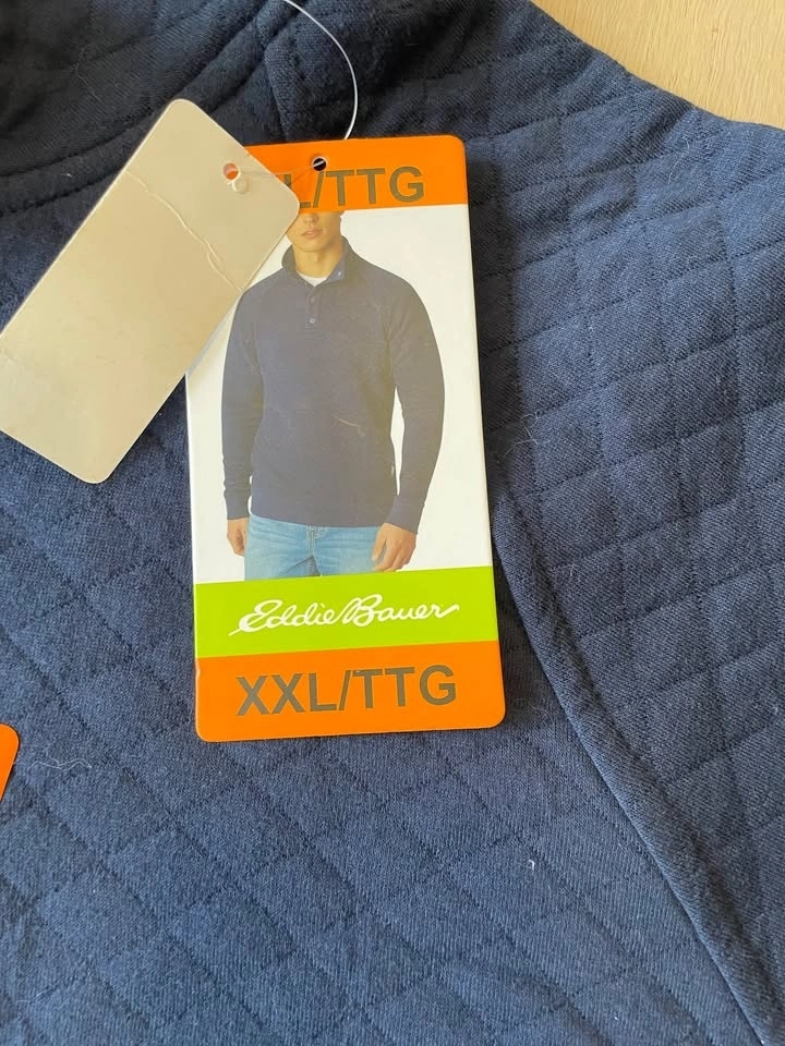 The Eddie Bauer Men's Quilted Quarter Snap in blue (size XXL/TTG) offers a warm, stylish fit with a cozy quilted design and a functional quarter snap closure, perfect for layering in cooler weather.
