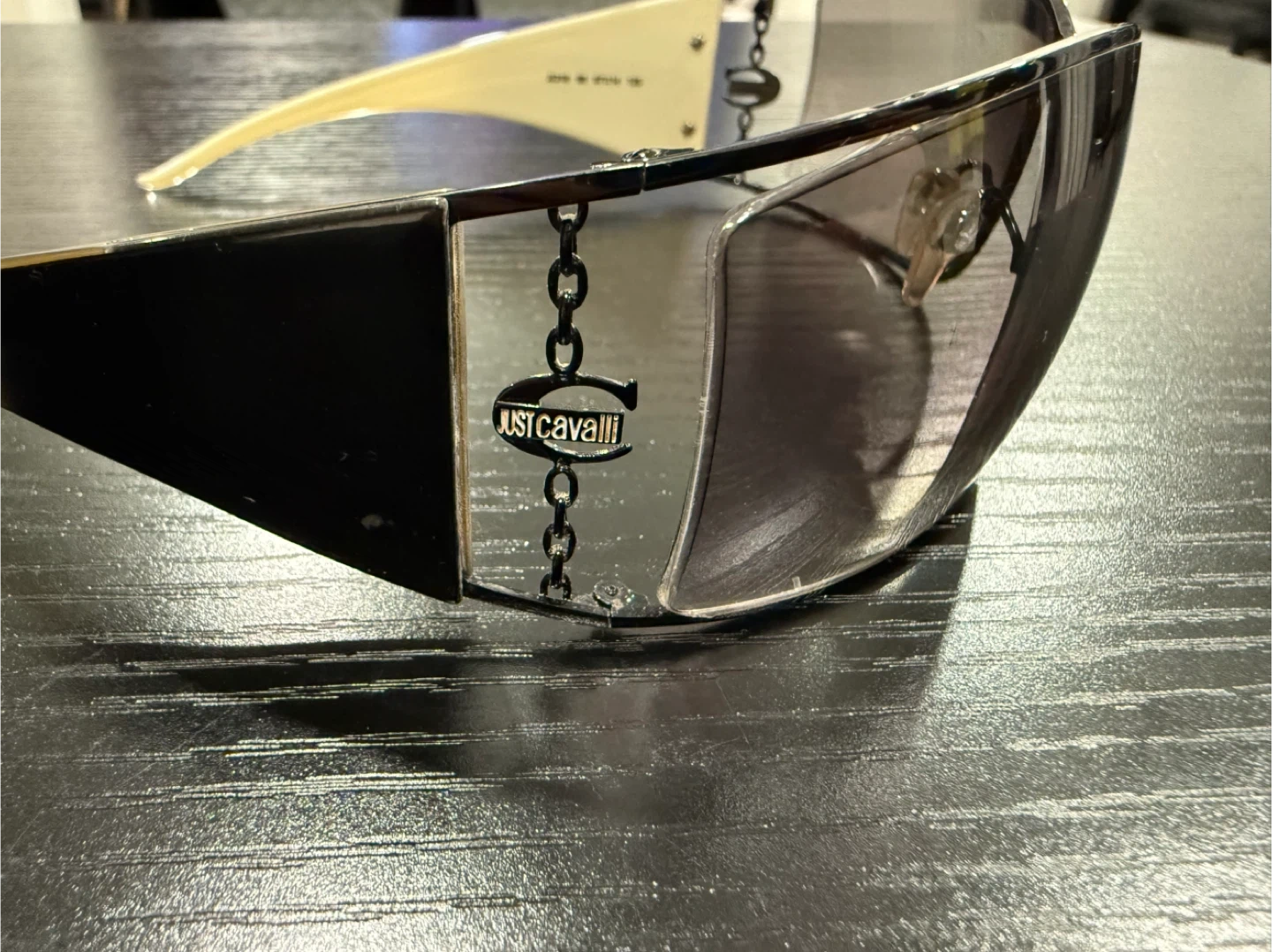 Shield / wraparound style with iconic Just Cavalli chain detail.