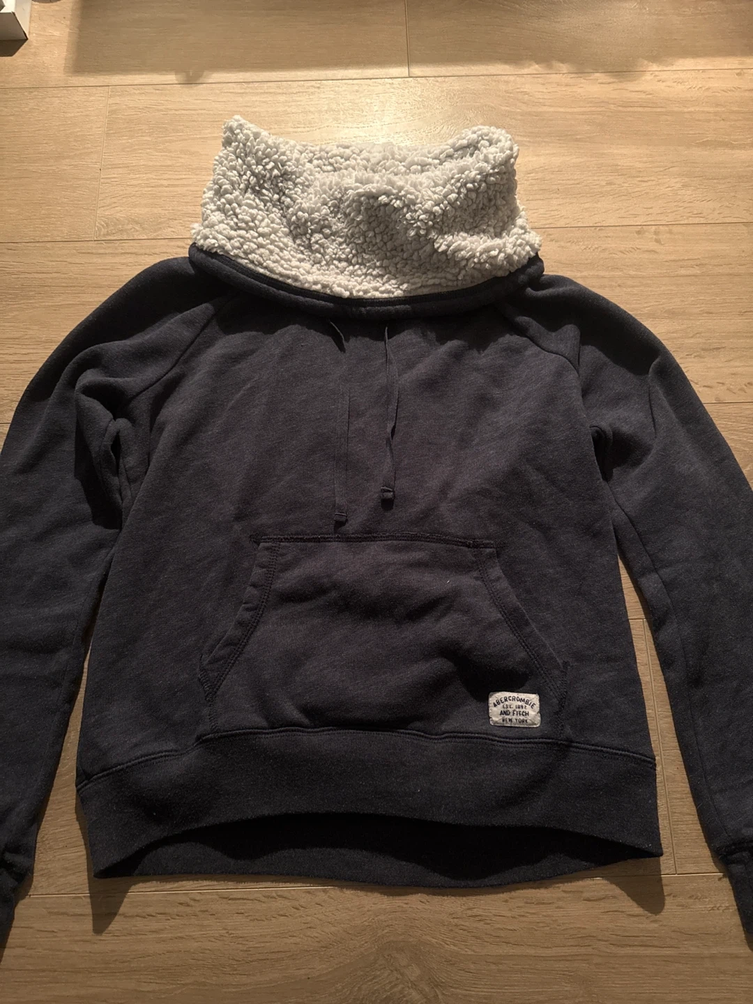 Cozy up in this Abercrombie & Fitch hoodie! It features a soft sherpa lining around the collar for extra warmth. The hoodie is a size M and in great condition. Perfect for chilly Canadian days!