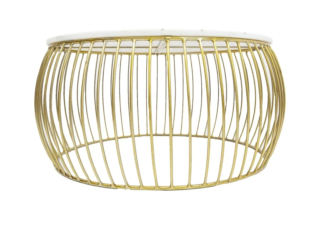 Selling a Katya Gold Round Marble Coffee Table with a wire metal base. It's a beautiful piece that originally retailed for $399.99. The table features a stylish marble top with gold accents and a unique wire base. Perfect for adding a touch of elegance to your living room!