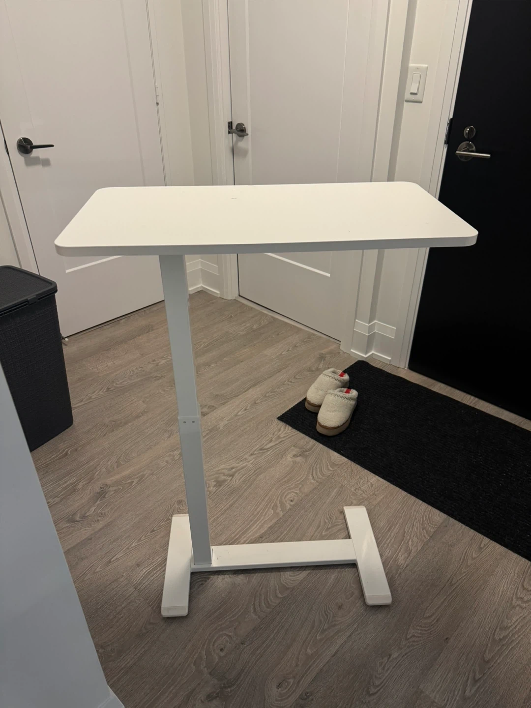 Selling a handy adjustable height table! It's great as a small desk or side table, and the height can be adjusted to suit your needs. Perfect for small spaces or as an extra surface when you need it
