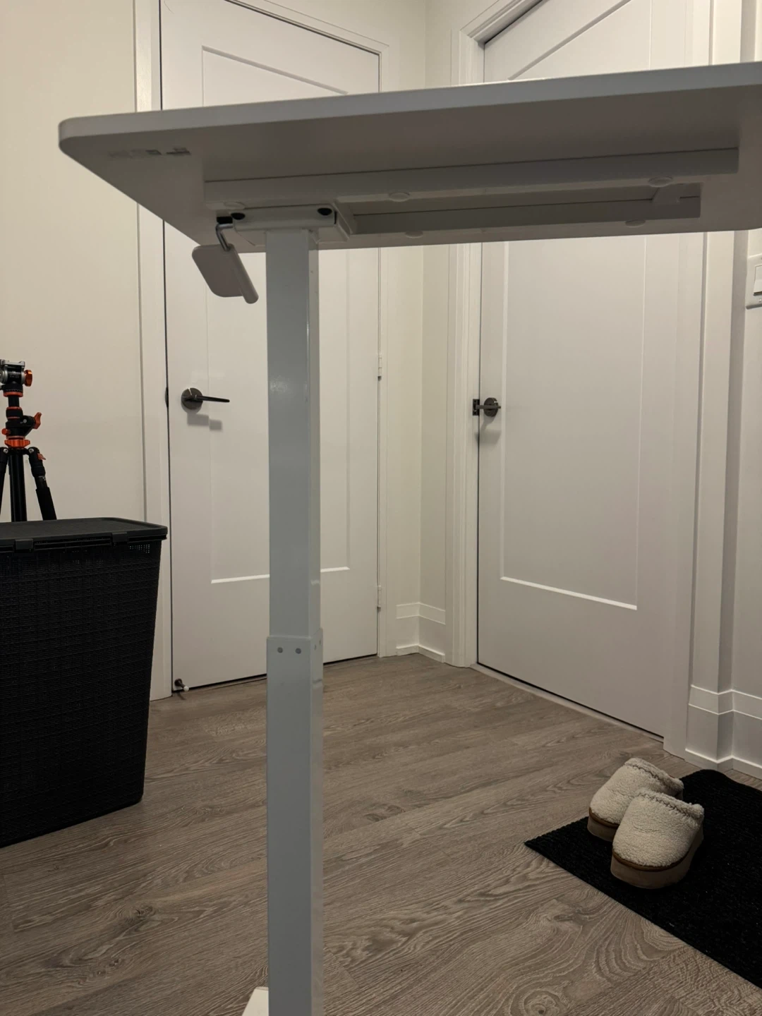 Selling a handy adjustable height table! It's great as a small desk or side table, and the height can be adjusted to suit your needs. Perfect for small spaces or as an extra surface when you need it