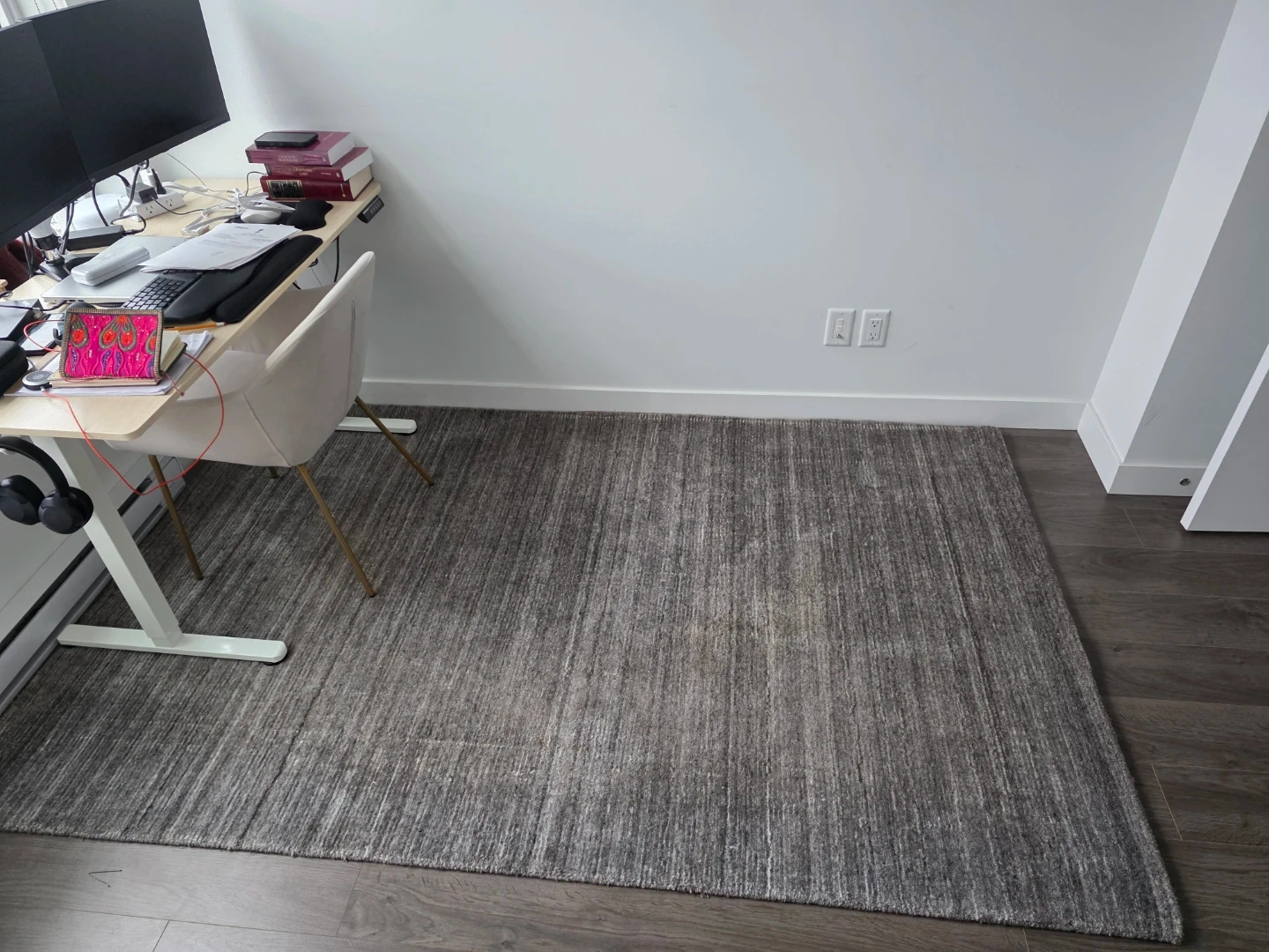 Selling a nice area rug in grey. It's in great condition and would look great in any room! It's a stylish and comfortable addition to your home.