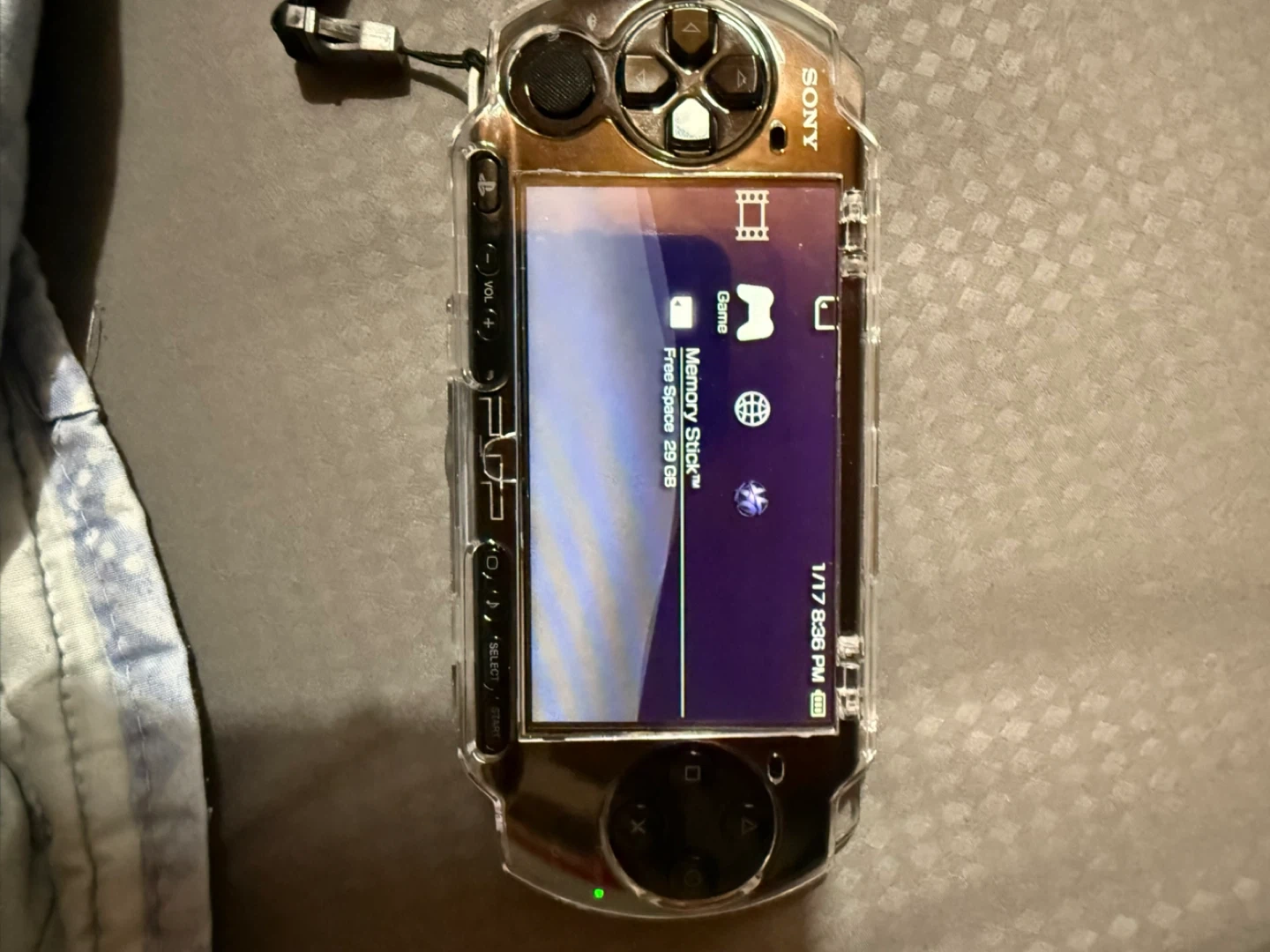 * Black PSP-3006 encased in a clear case