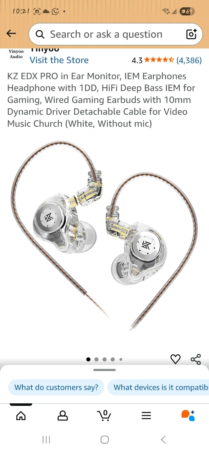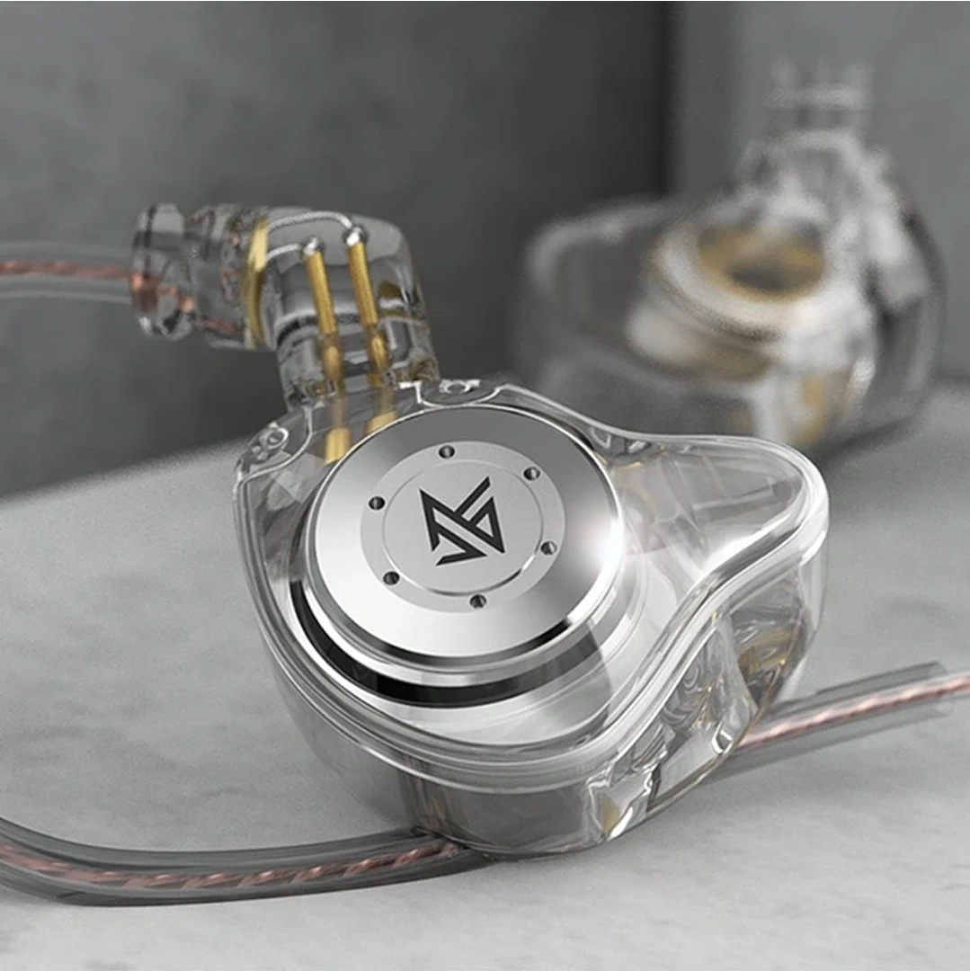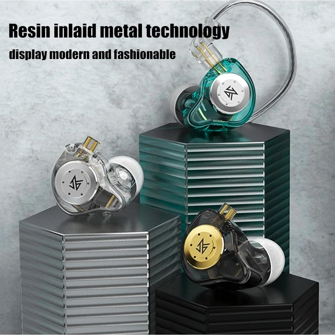 Selling a pair of KZ EDX PRO in-ear monitors. These are wired gaming earbuds with a 10mm dynamic driver and a detachable cable. They feature 5N oxygen-free copper wire and 0.75mm 2Pin gold-plated pins. The design incorporates resin inlaid metal technology, making them both modern and fashionable