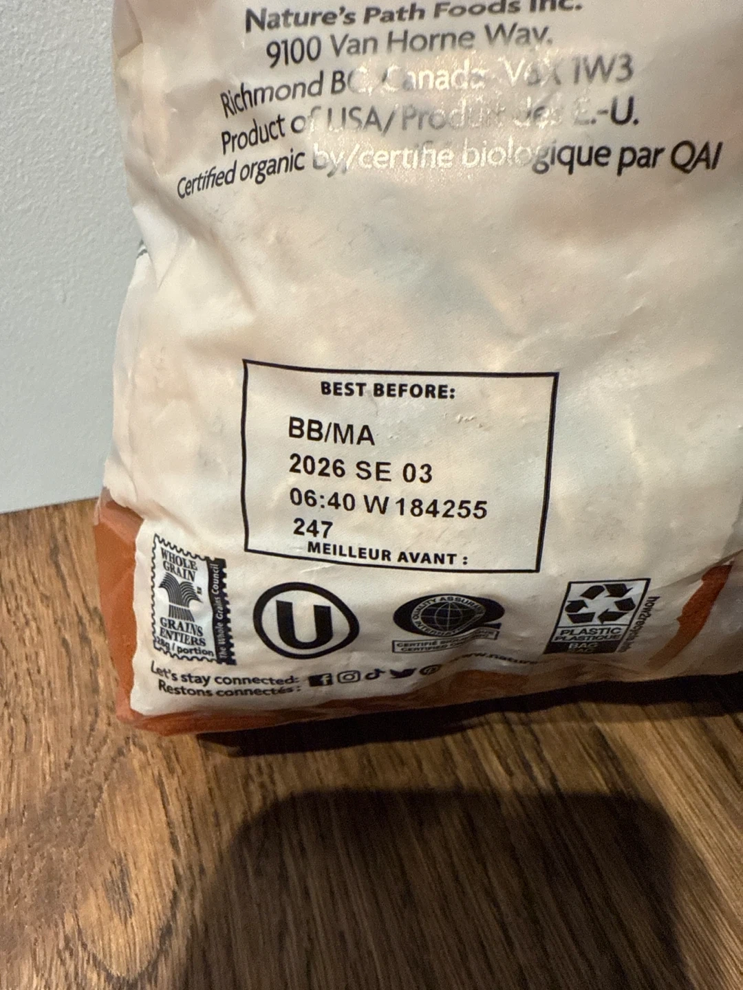 Selling an unopened bag of Nature's Path Heritage Flakes cereal! It's organic and contains ancient grains like khorasan wheat, oats, spelt, barley, millet, and quinoa.