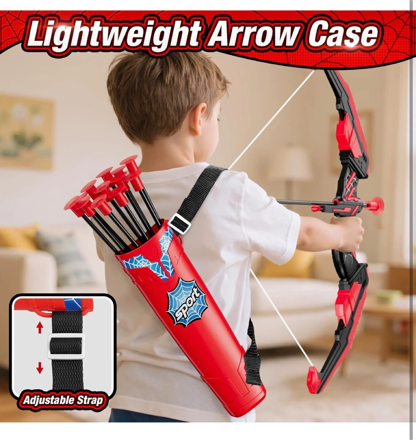 This bow and arrow set is perfect for indoor and outdoor play! It's designed with a comfy grip for little hands, making it easy to use. This set helps improve motor skills, balance, and focus. It comes with a target, arrows, and a quiver to hold the arrows