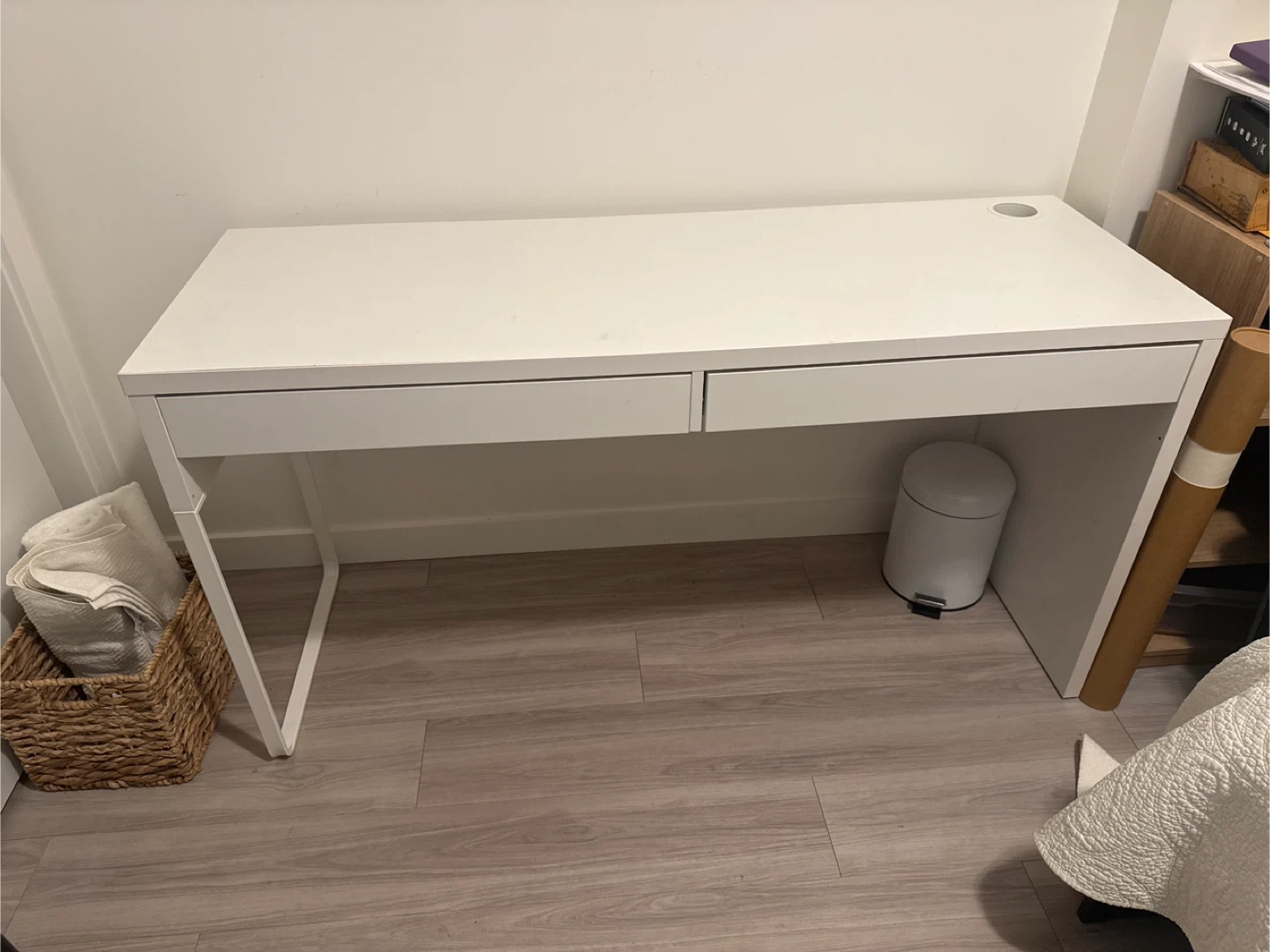 Selling a simple white IKEA MICKE desk (retail $159) with built-in drawers! It's perfect for a home office or study space. The desk is in great shape and ready for a new home. It's a clean and functional piece.