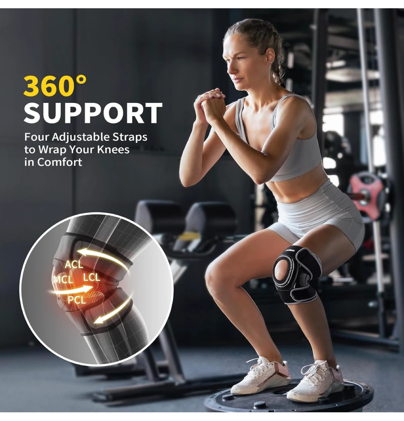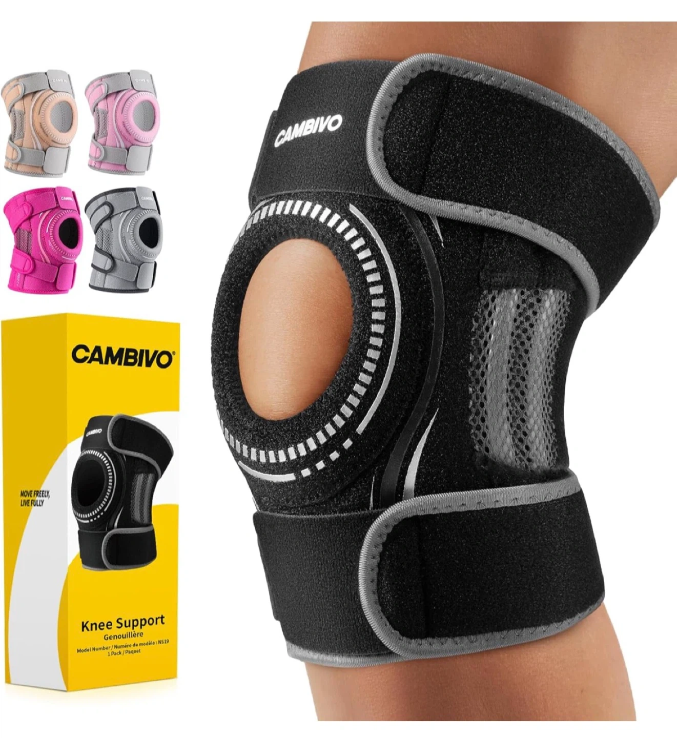 Get the support you need with this Cambivo knee brace! It features 360° support with four adjustable straps to wrap your knees in comfort. This brace is designed with ultra-light innovation, so you won't feel bulky while embracing flexibility. It only weighs 0.2 lbs