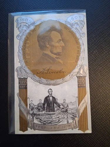 Celebrate a significant moment in history with this vintage postcard commemorating the 100th anniversary of Abraham Lincoln's birth. A cherished piece for any collector, it features iconic imagery related to the American Civil War and is a tribute to one of the most revered figures in U.S. history. This single unit postcard originates from the United States and is designed to commemorate the anniversary of Lincoln's birth. It captures the essence of the occasion with its thoughtful theme and is a must-have for those interested in historical memorabilia or the legacy of Abraham Lincoln.