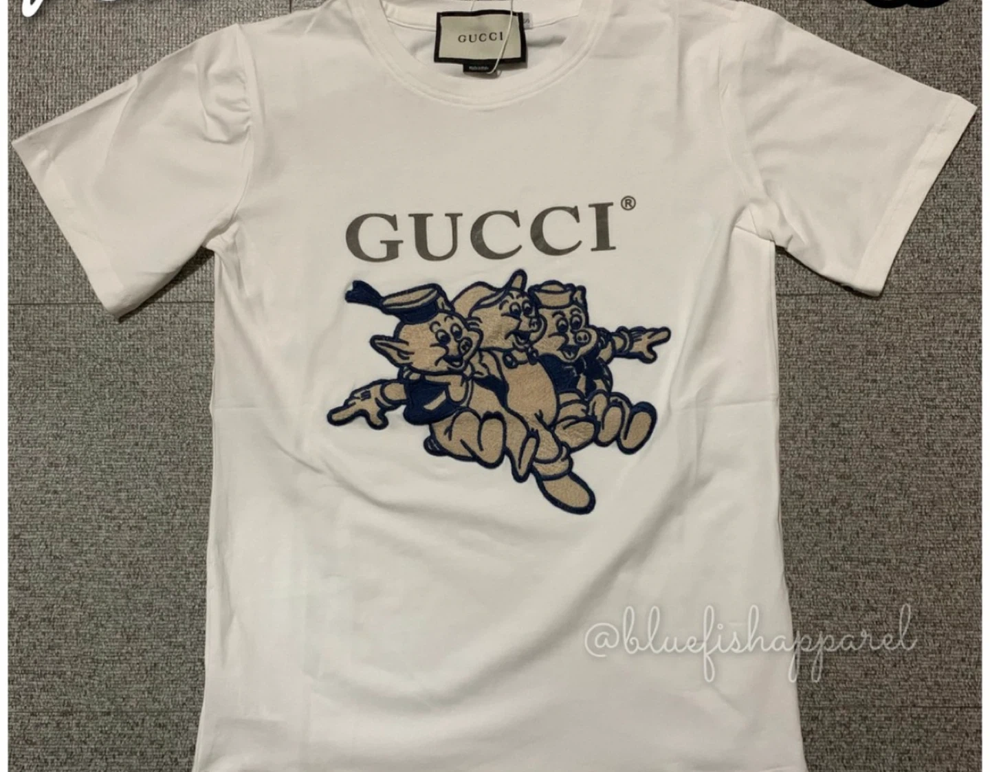Buy & SellGucci Three Little Pigs T-shirtGucci Three Little Pigs T-shirt$270A fun Gucci t-shirt featuring the Three Little Pigs. It's white and in great condition!ConditionNewWHERE TO MEETCheck LocationView MapSELLERXyKensington100 reviews1 chats·0 favorites·22 viewsSEND CHAT TO SELLERHi Xy! I’m interested in your listing.Hi Xy! I’m interested in your listing.Get the Karrot app to chatSign In to chat