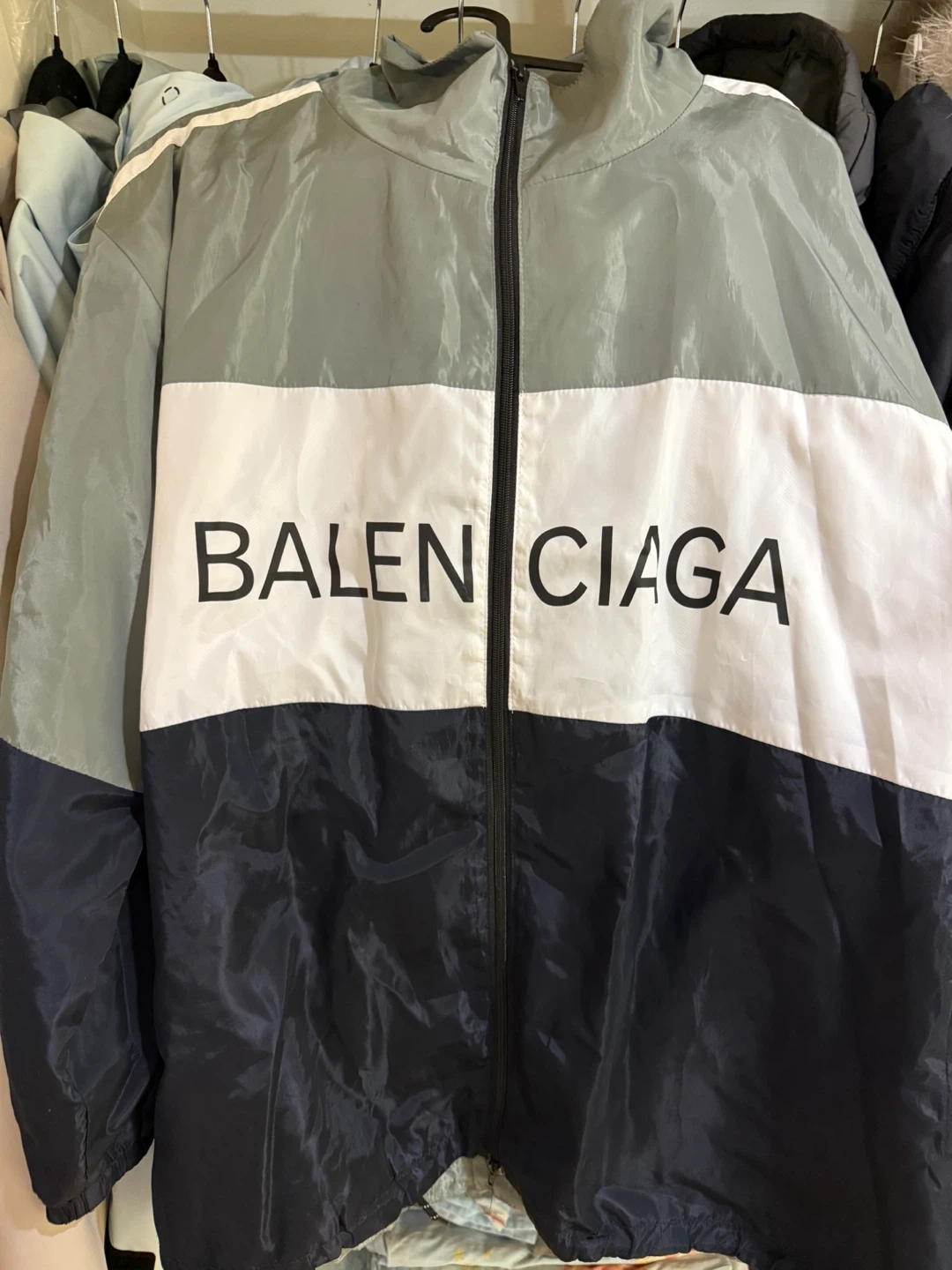 Selling a stylish Balenciaga colour block windbreaker. Features a grey, white and navy colour scheme. Perfect for layering and adding a touch of designer flair to your wardrobe!