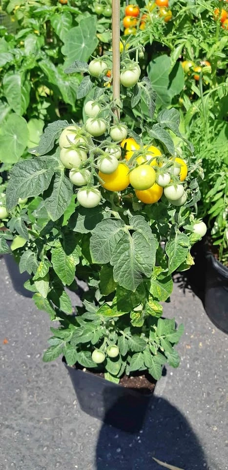 Produces delicious Yellow cherry tomatoes with a good tomato flavor, as strong as a red cherry, but not especially sweet.