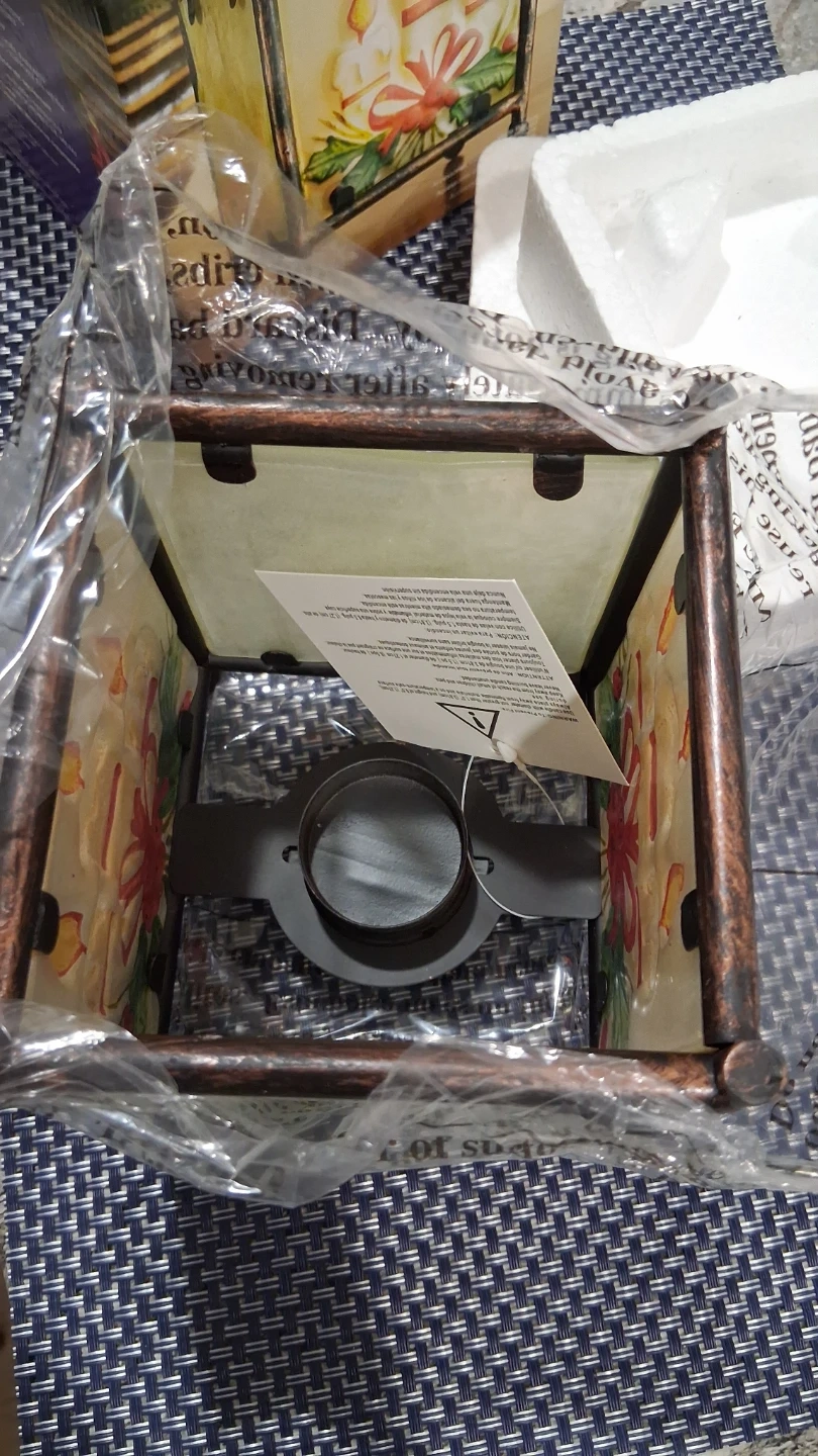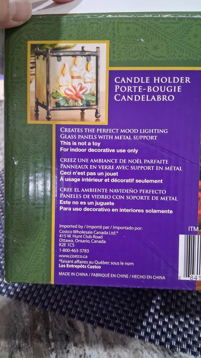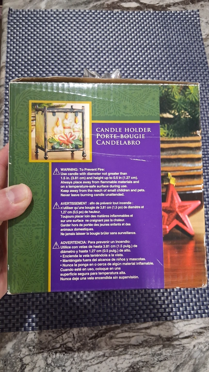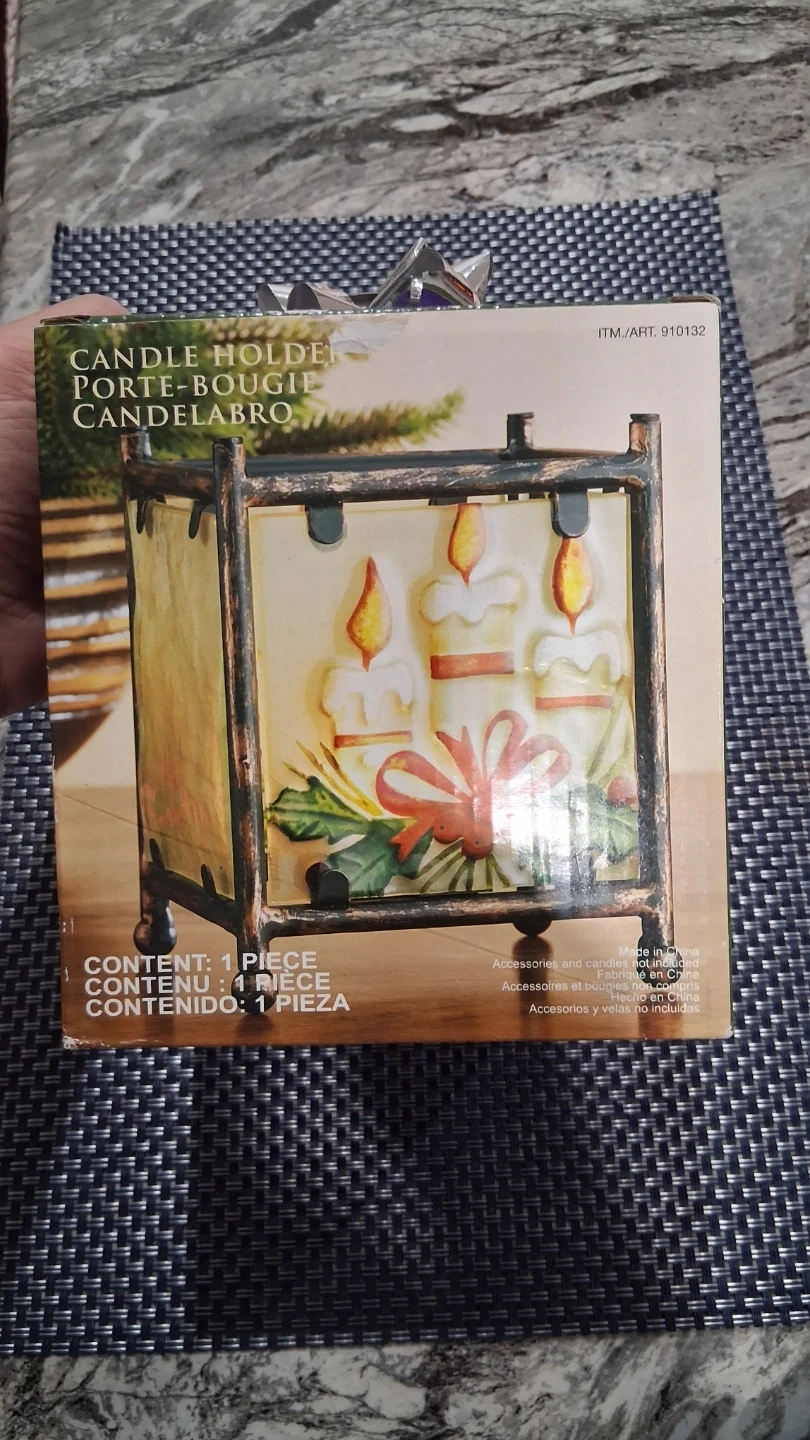 CANDLE.HOLDER, GLASS PANELS WITH METAL SUPPORT, NEW