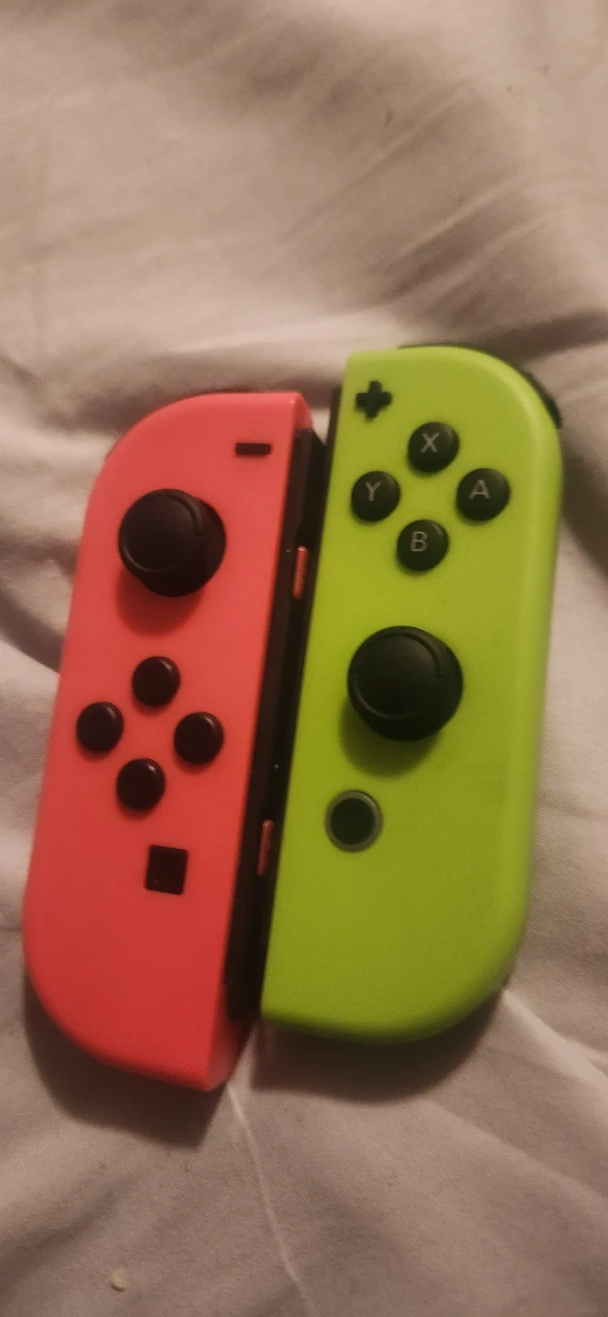 Selling a pair of Nintendo Switch Joy-Con controllers! One is neon red, and the other is neon green. They're in good working condition and ready for a new gamer to enjoy