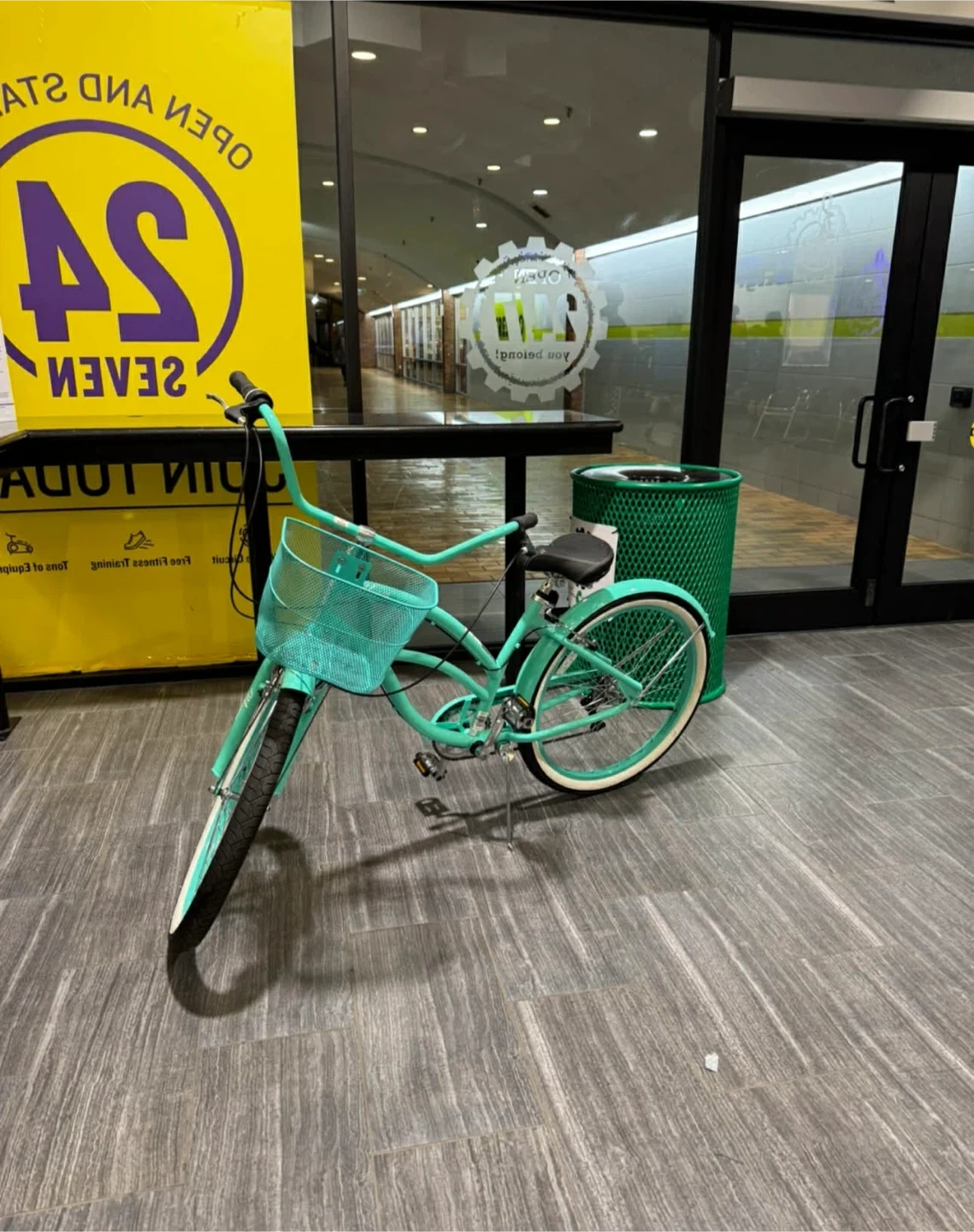 New cruiser bike, used very rarely and selling since I don’t use it often. Very comfortable ride with an easy step-through frame, wide cushioned seat, upright handlebars, and a front basket for everyday use. Smooth single-speed bike in a stylish mint/teal color, ready to ride with no issues.