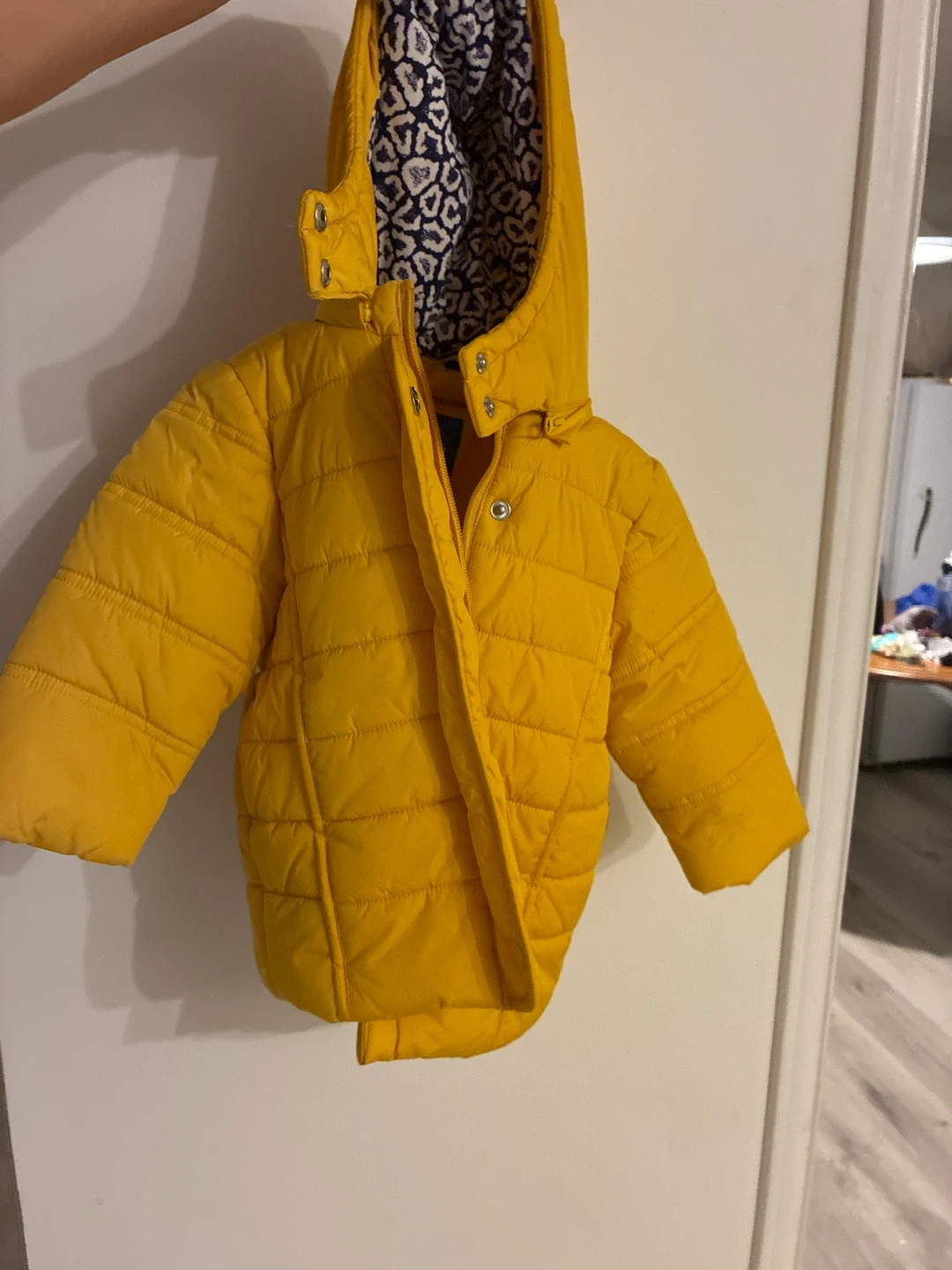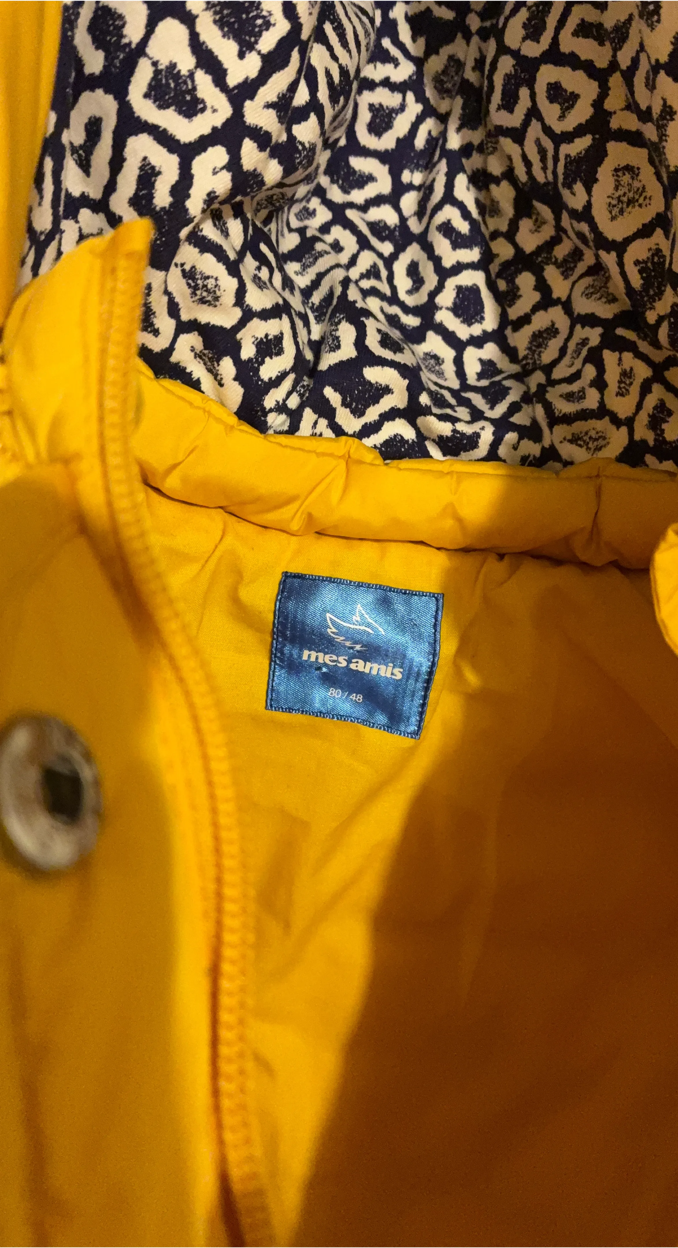 A cute and cozy yellow puffer jacket from Mes Amis! The size is 80/48. Perfect for keeping your little one warm during the colder months. We never used it as my little one’s arms were too long for it!