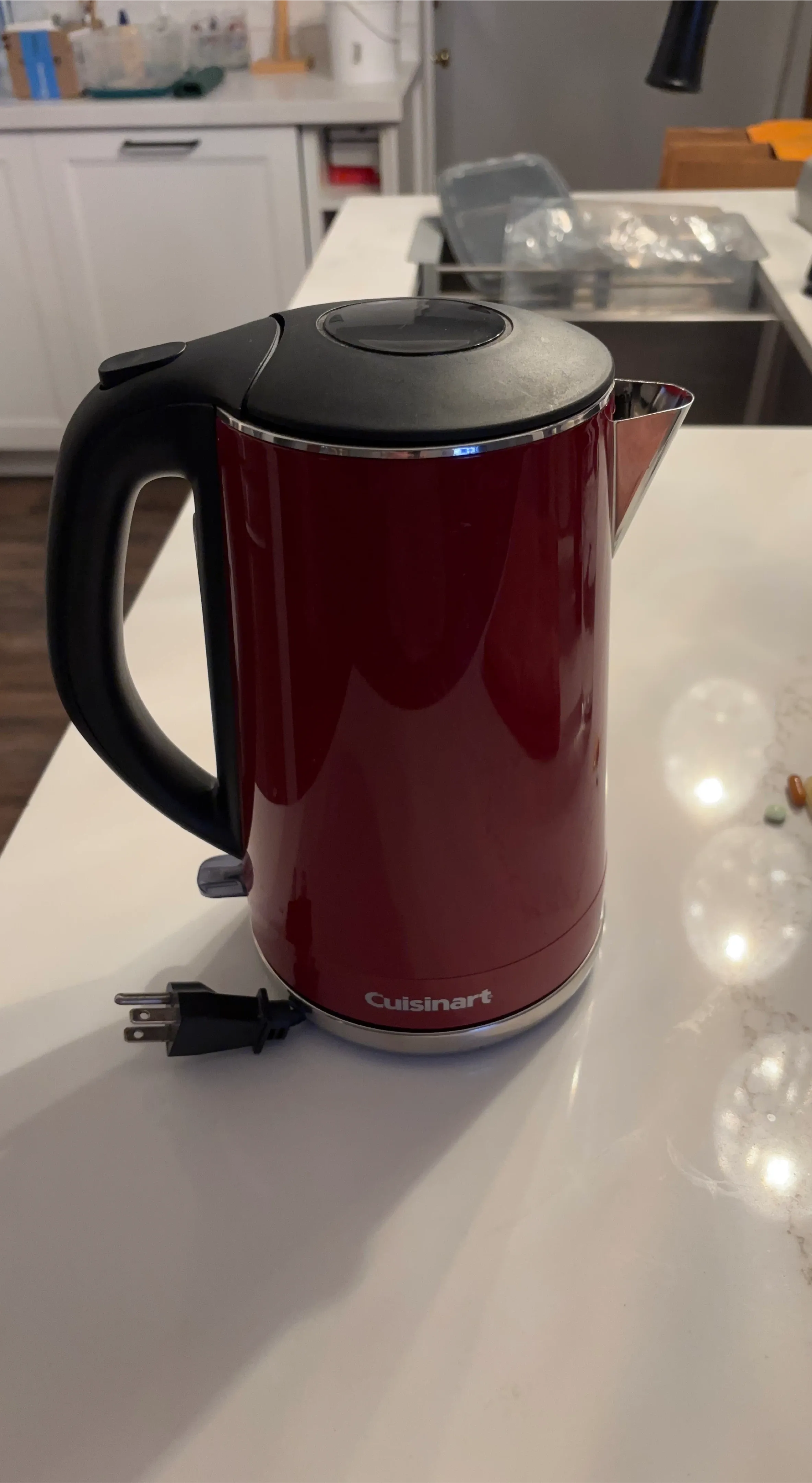 Cuisinart cordless electric kettle in red. It's in great shape and ready to heat up your water quickly and efficiently! Perfect for tea, coffee, or any hot beverage