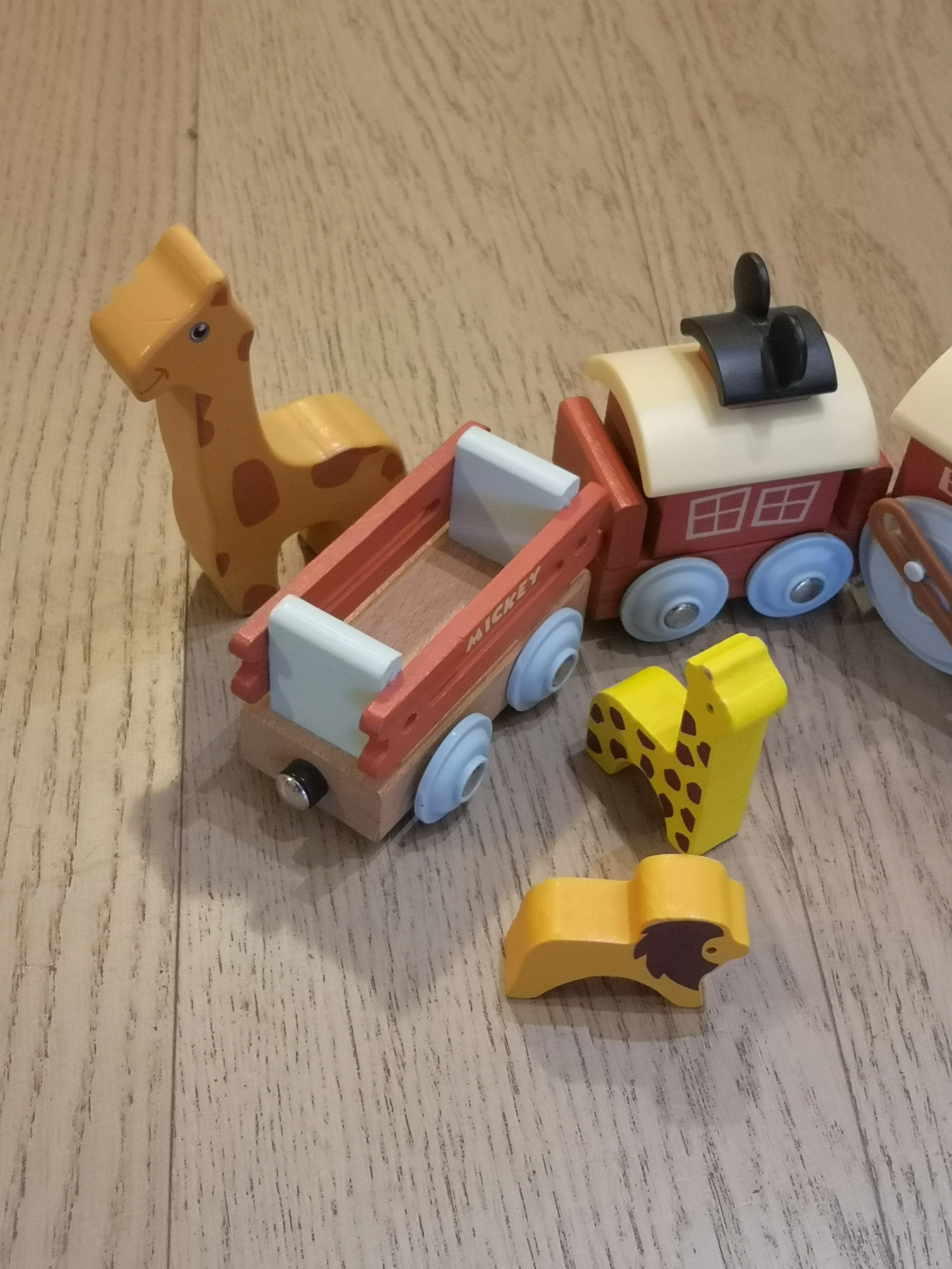 Selling a cute Mickey Mouse wooden train set! It includes a train and several animal figures. A great toy for toddlers and young children who love Mickey Mouse and trains. Great condition. Free two wooden animals with.