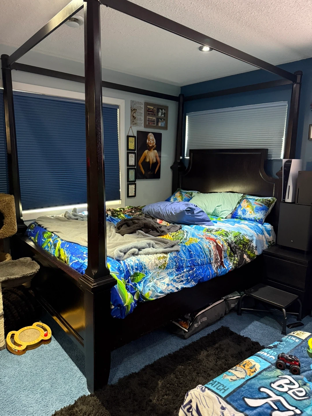 Beautiful Dark Wood Queen Size Canopy Bed $350