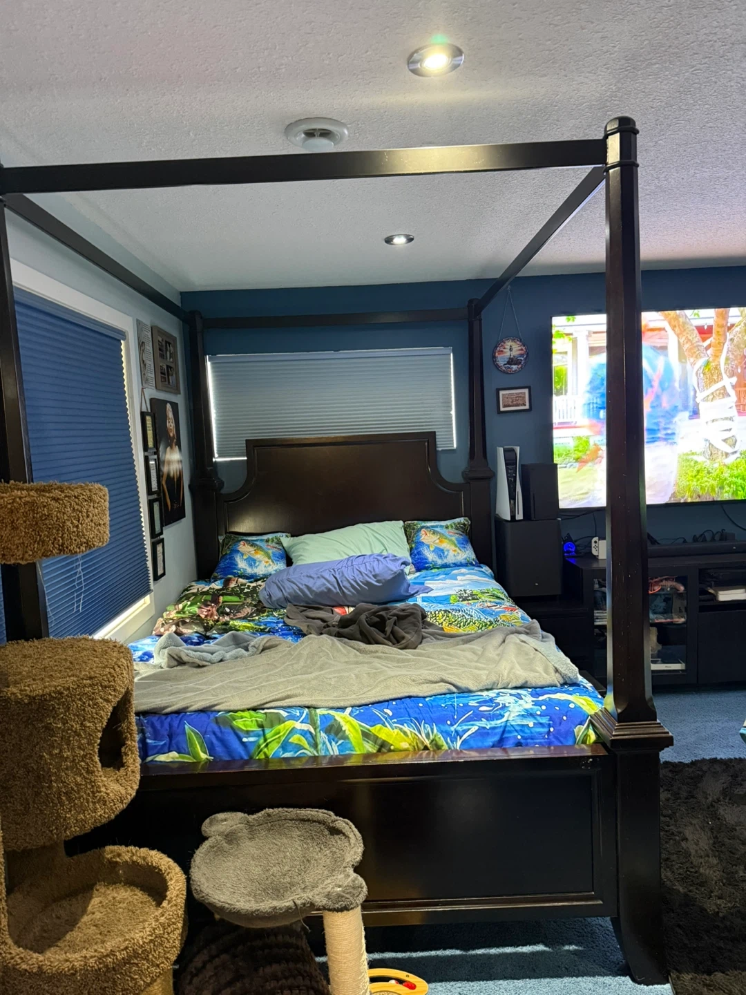Beautiful Dark Wood Queen Size Canopy Bed $350