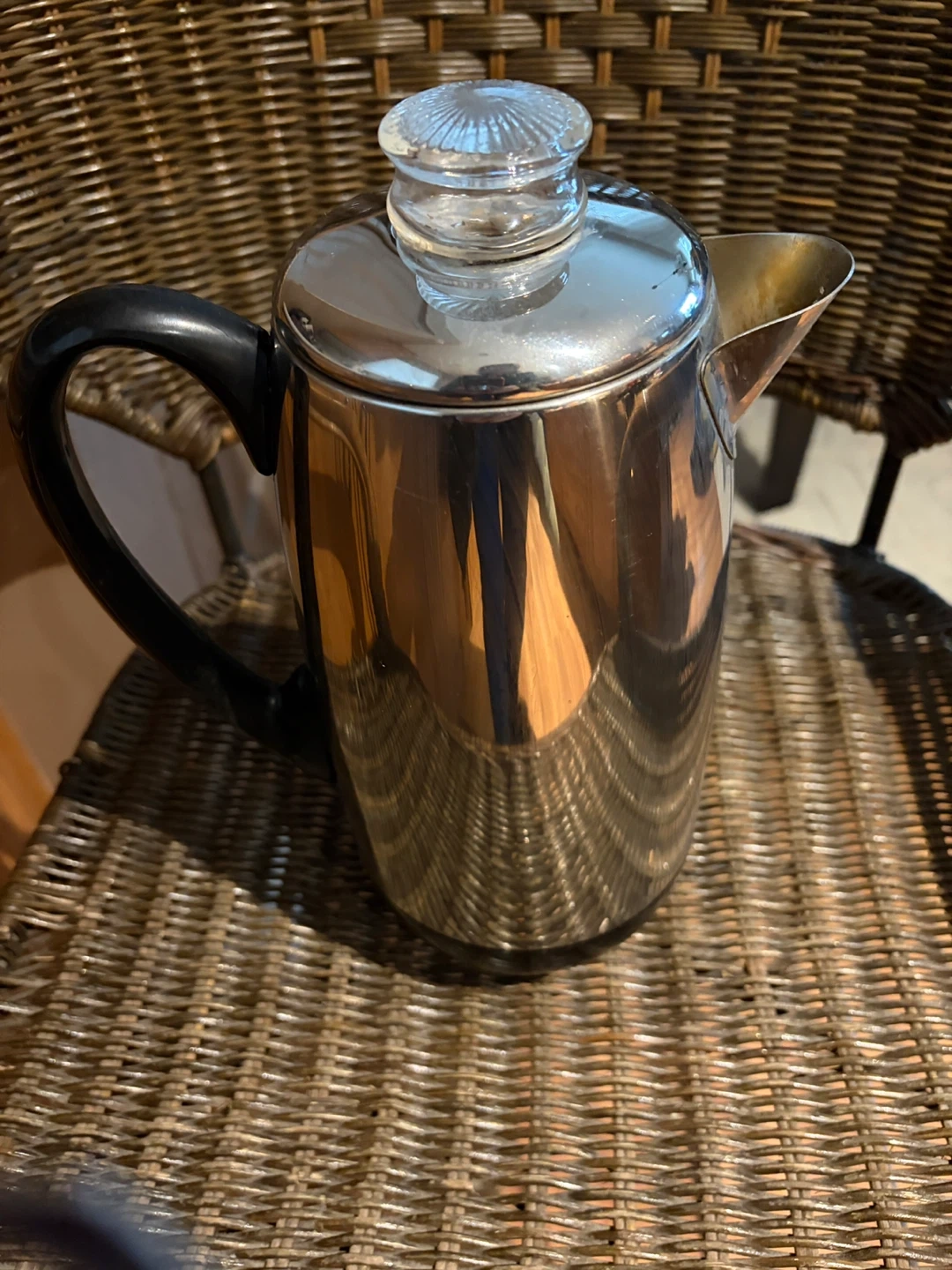 Selling a Farberware coffee percolator, model 142. It's in good working order and comes with the power cord. Perfect for brewing a classic cup of coffee!