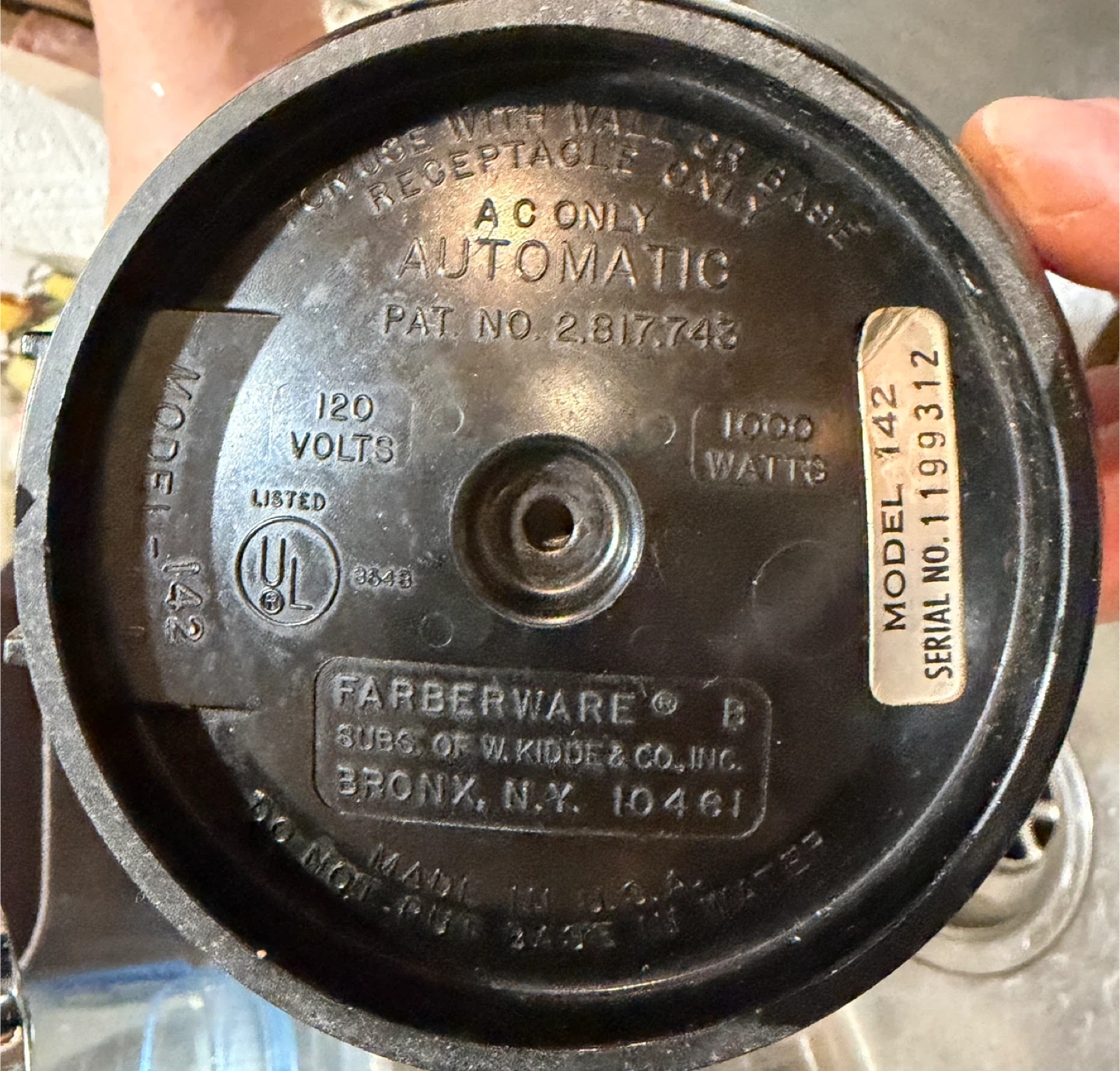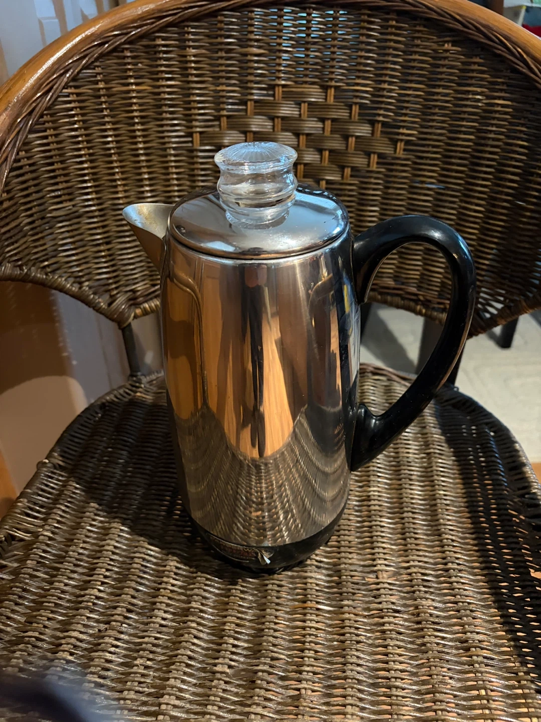 Selling a Farberware coffee percolator, model 142. It's in good working order and comes with the power cord. Perfect for brewing a classic cup of coffee!