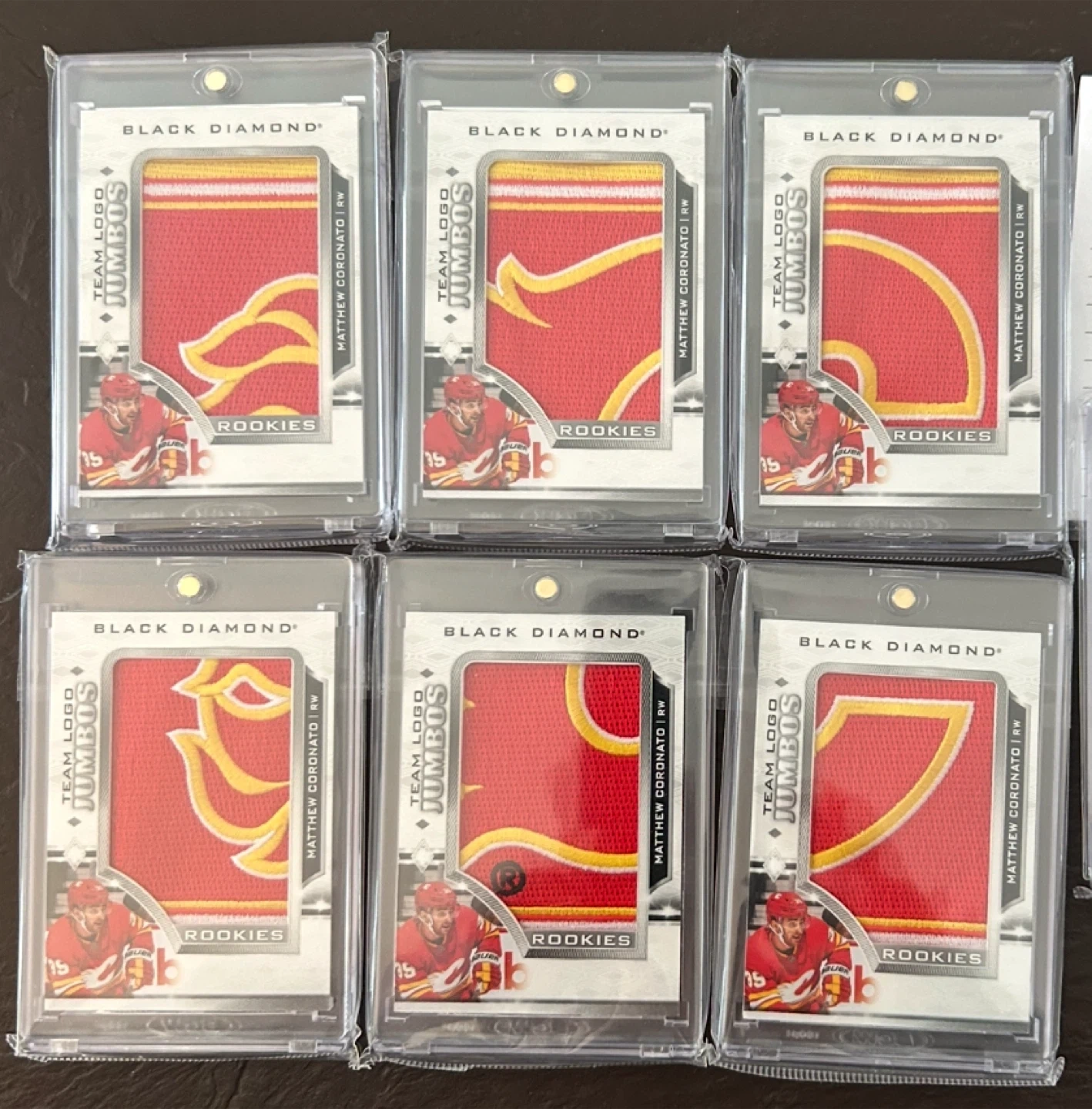 Selling a lot of Matthew Coronato Black Diamond Rookie cards! These cards feature team logo jumbo patches. A great addition to any Flames fan's collection