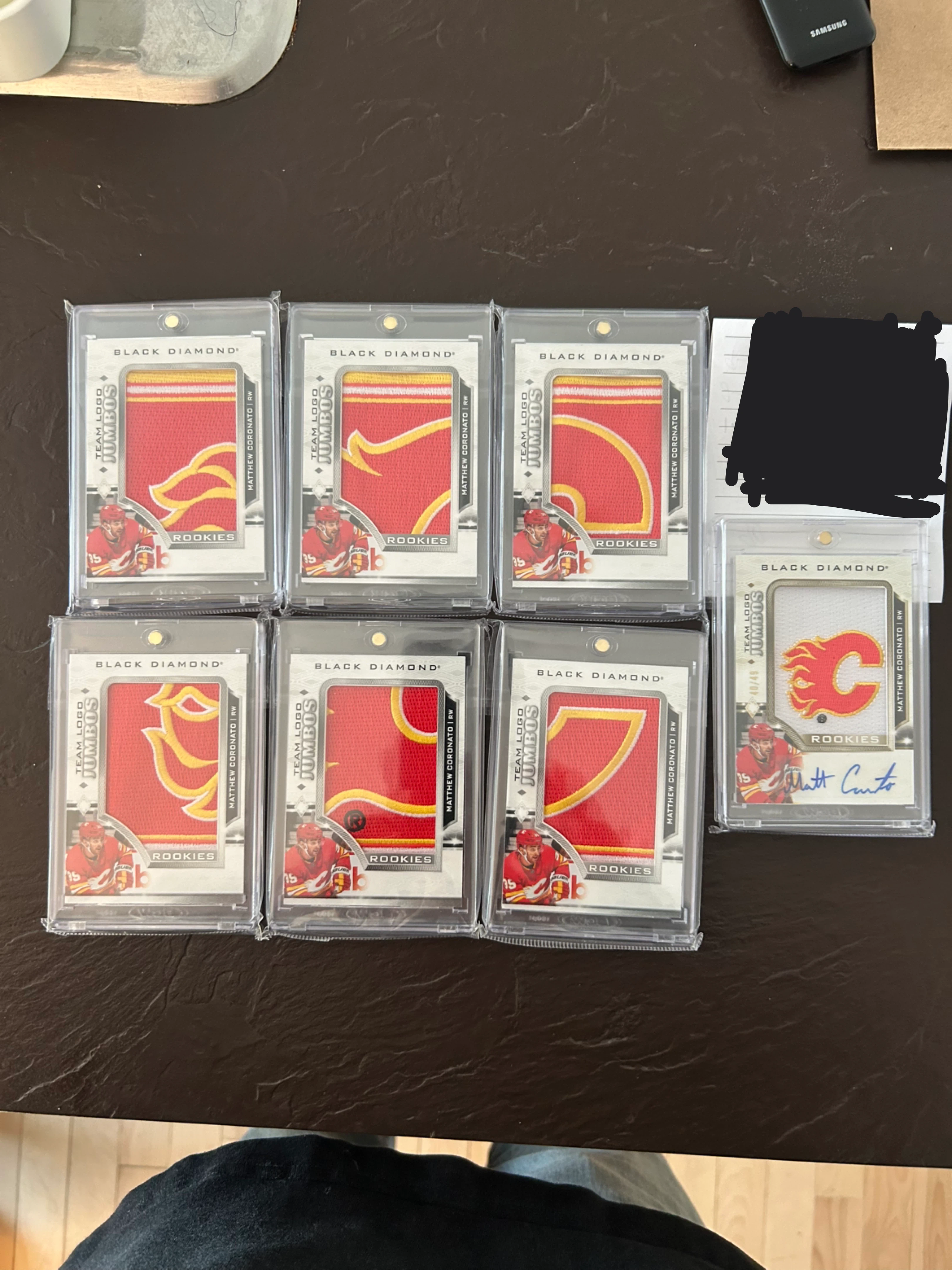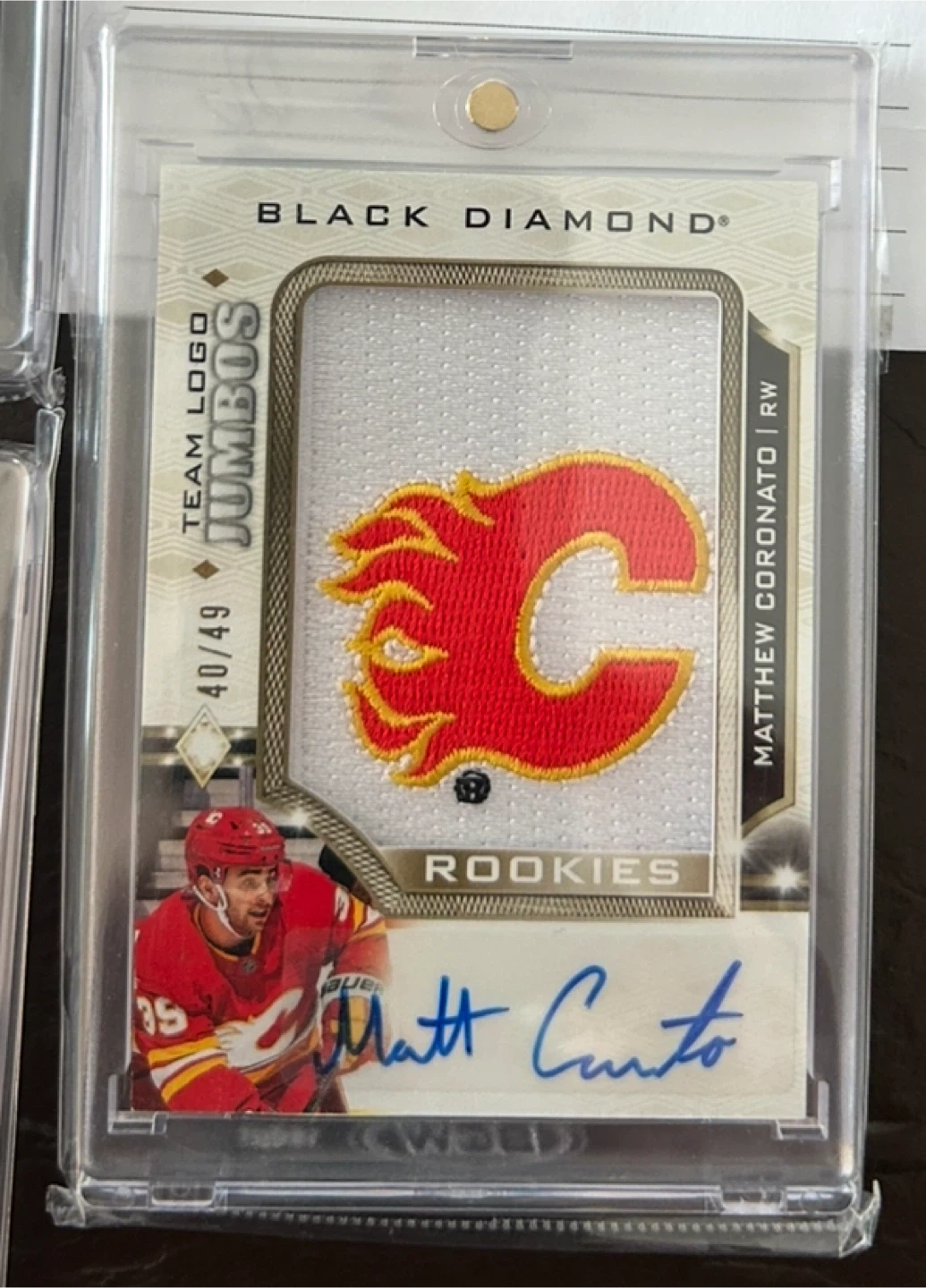 Selling a lot of Matthew Coronato Black Diamond Rookie cards! These cards feature team logo jumbo patches. A great addition to any Flames fan's collection
