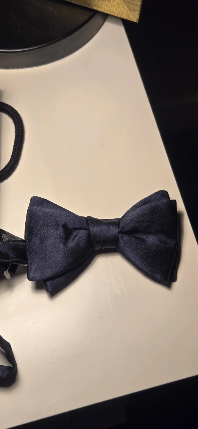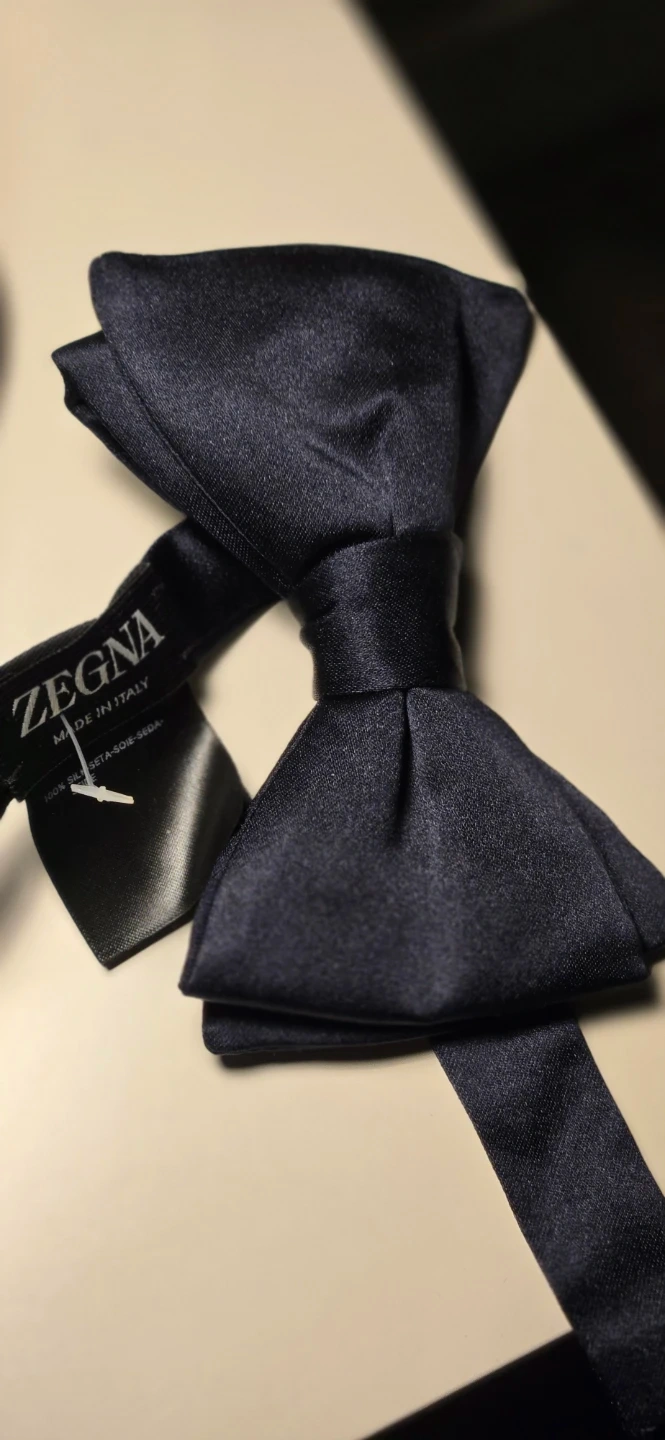 Here's a brand new with tags Zegna bow tie! It's made in Italy from 100% silk and comes in a classic navy colour. Originally bought for $195 and comes with the Harry Rosen bag!