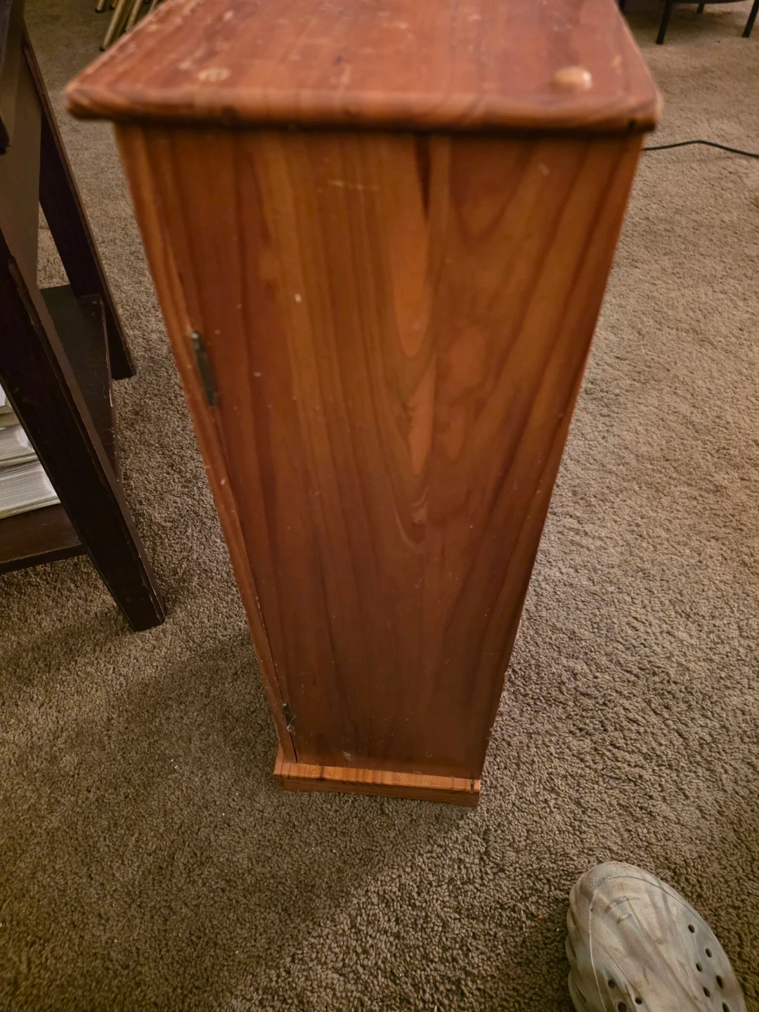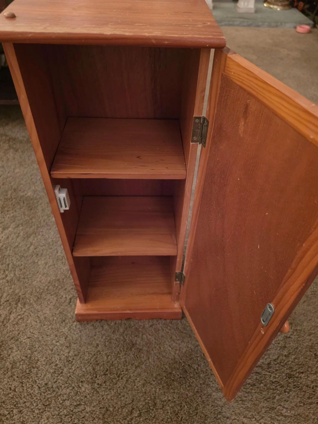 Buy & SellSmall Wooden Cabinet with DoorSmall Wooden Cabinet with Door$6Selling a small wooden cabinet! It has a single door with a knob and interior shelves. It's perfect for extra storage in a small spaceConditionOkayWHERE TO MEETJefferson ParkView MapSELLERverifiedSue MJefferson Park32622 reviews1 chats·5 favorites·67 viewsSEND CHAT TO SELLERHi Sue M! I’m interested in your listing.Hi Sue M! I’m interested in your listing.Get the Karrot app to chatSign In to chat