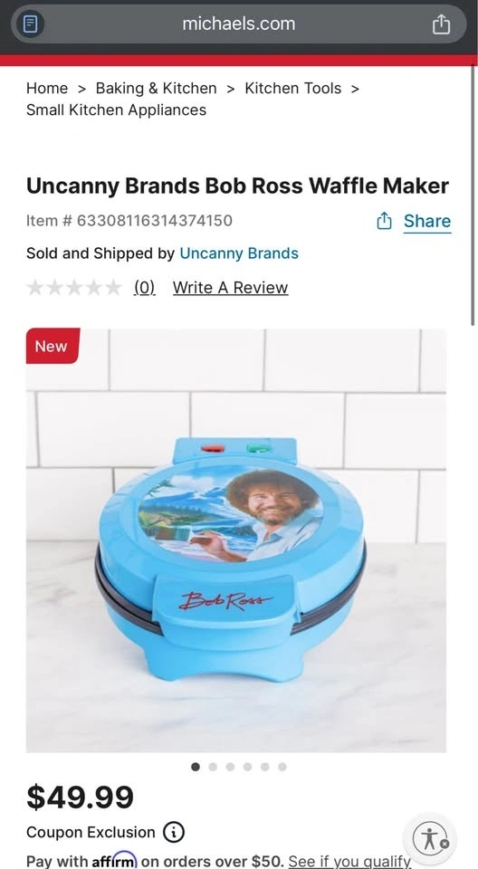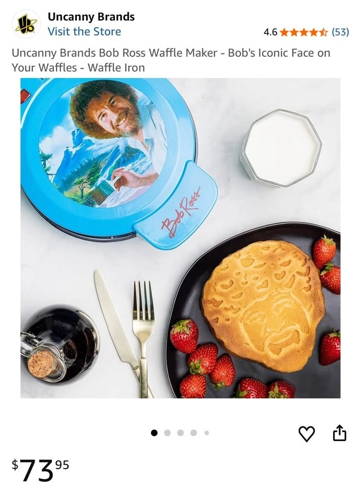 Bob Ross Waffle Maker - iconic waffles every morning or for your brunch party. These retail online on many sites for $50-75+.