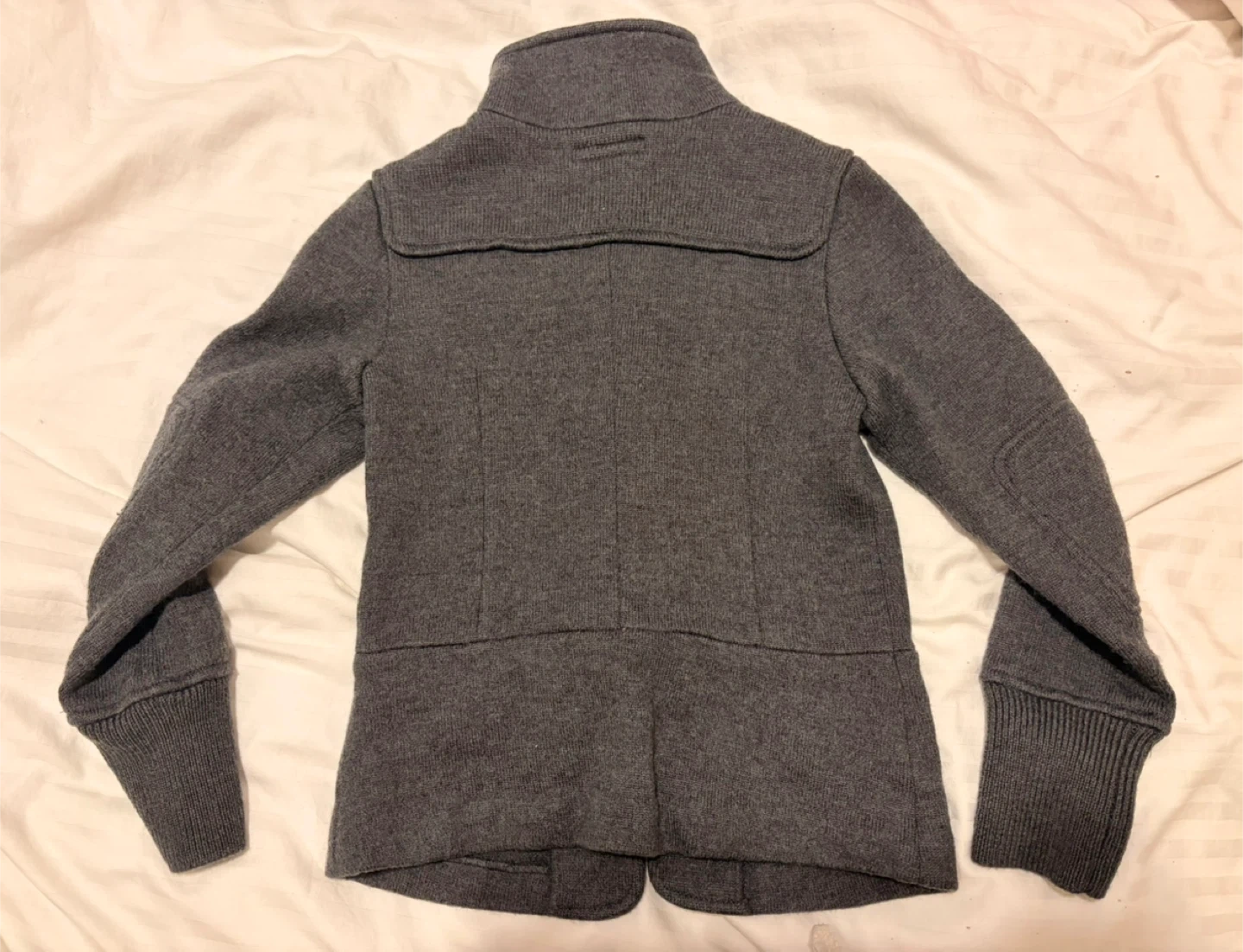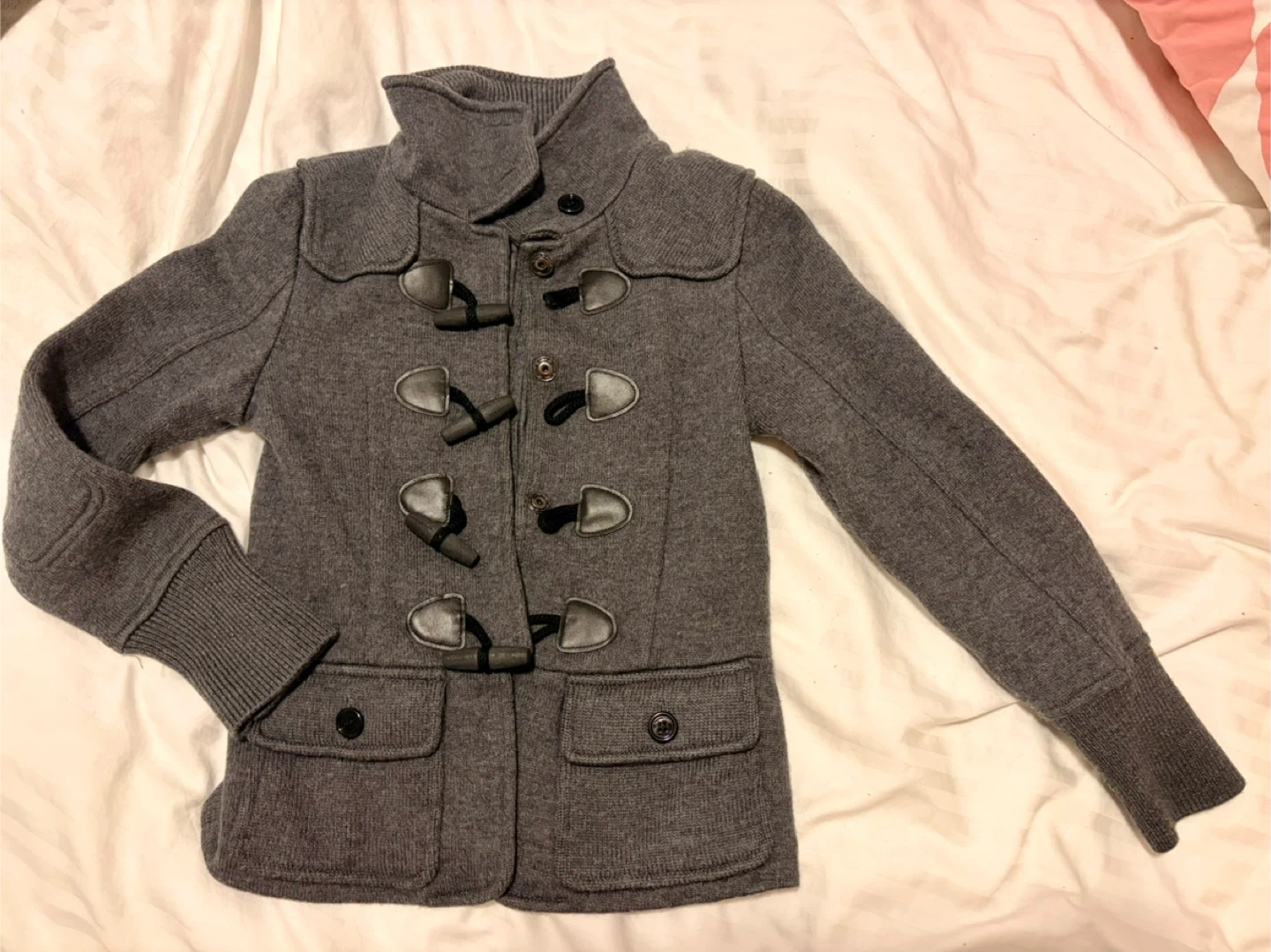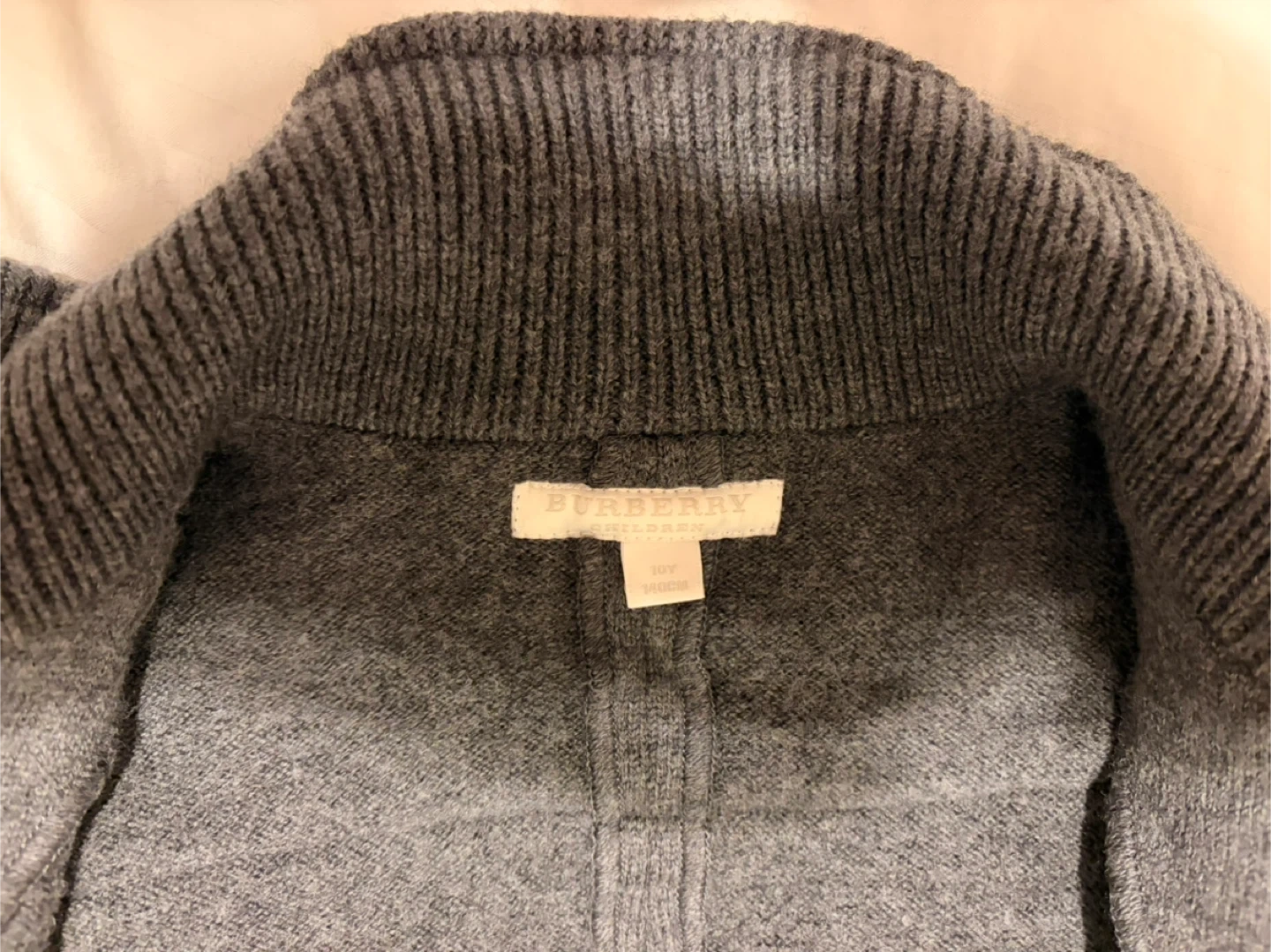 Selling a gently used Burberry children's jacket. It's made of 100% merino wool, perfect for keeping your little one warm and stylish! It's a lovely grey colour and in great condition.