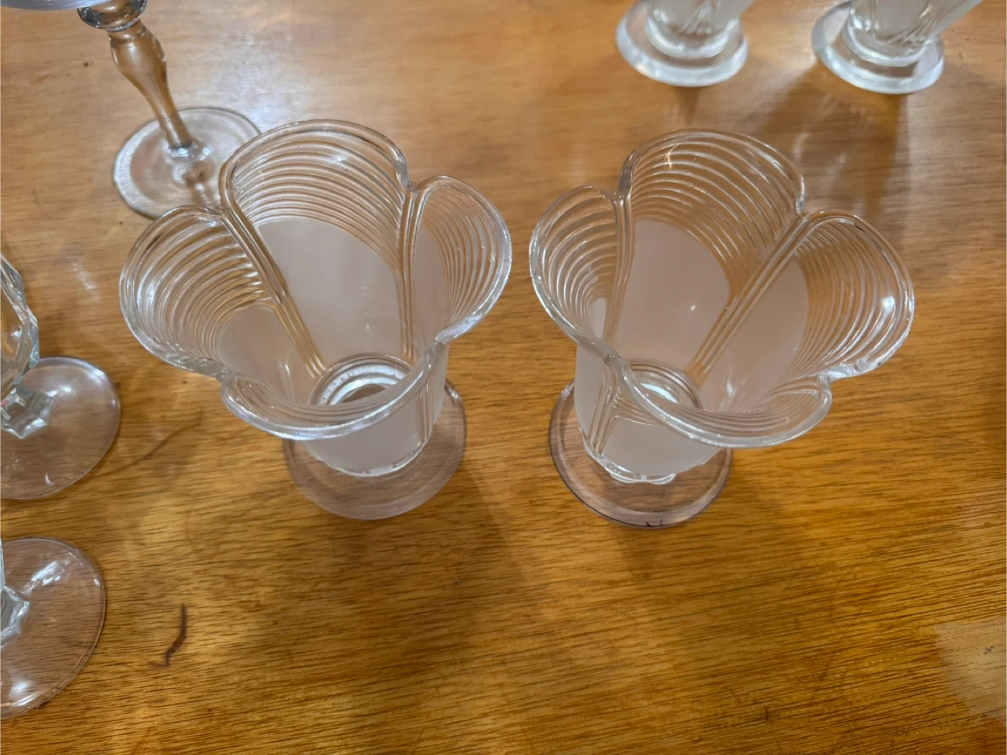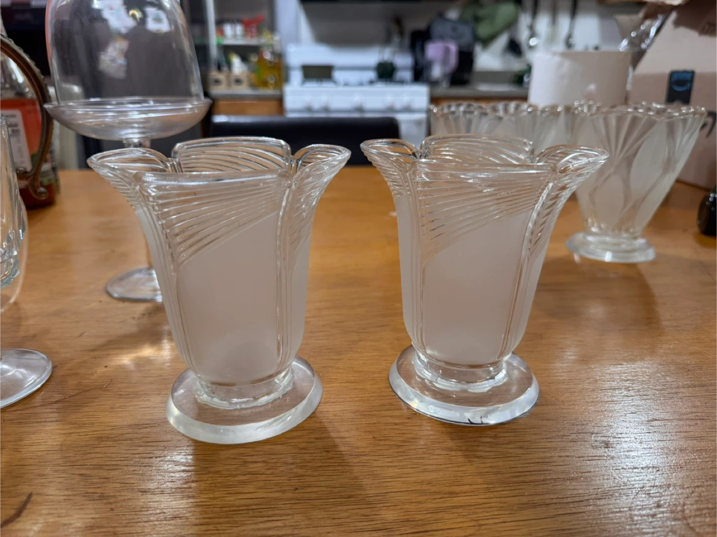 Selling a set of 8 vintage dessert bowls (4 Pairs). They are made of clear glass with a frosted finish. Perfect for ice cream or pudding!