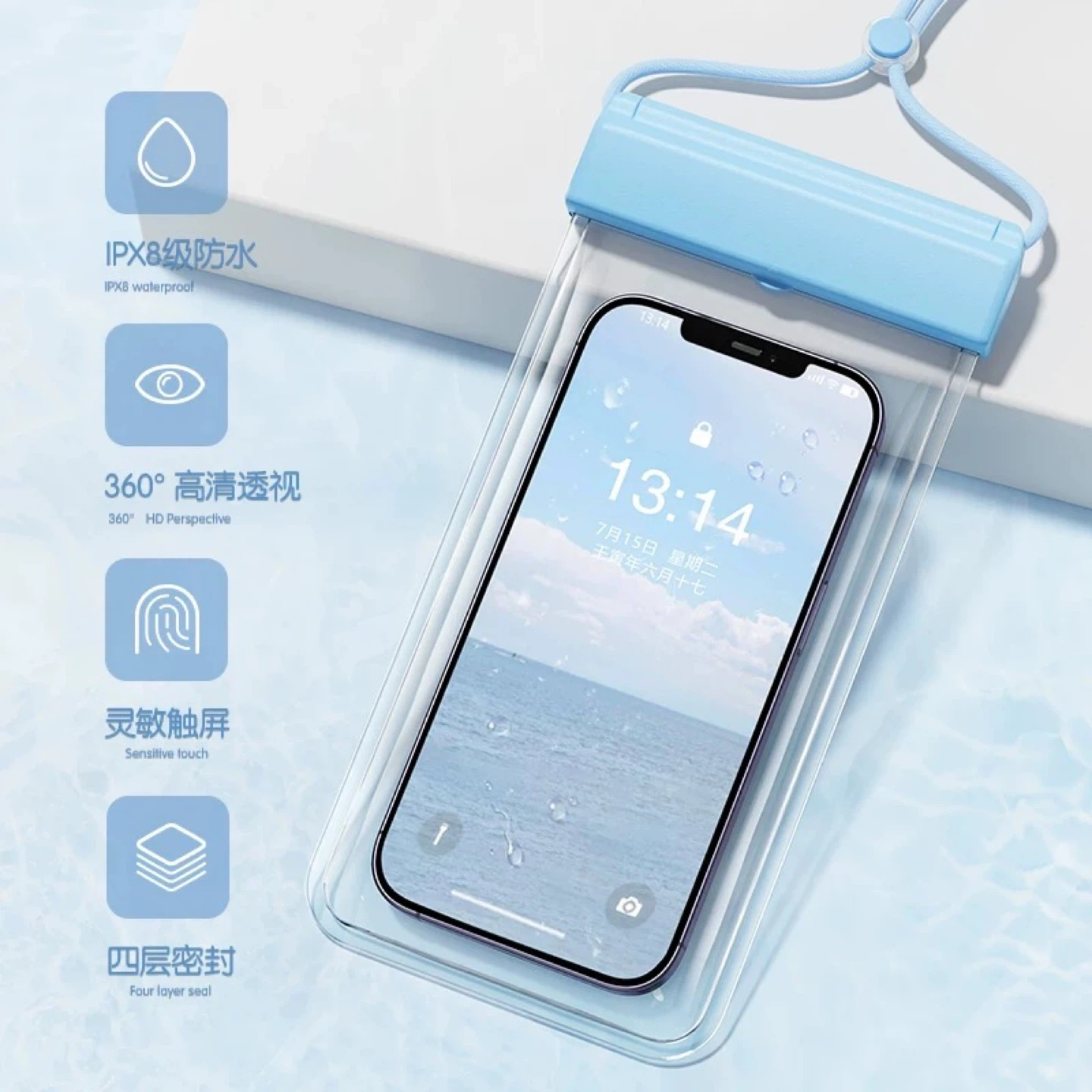 Keep your phone safe and dry with this waterproof phone pouch! it's perfect for the beach, pool, or any other water activity. The pouch also features a sensitive touch screen, so you can still use your phone while it's inside. It has a 360° HD perspective and a four-layer seal to keep water out.
