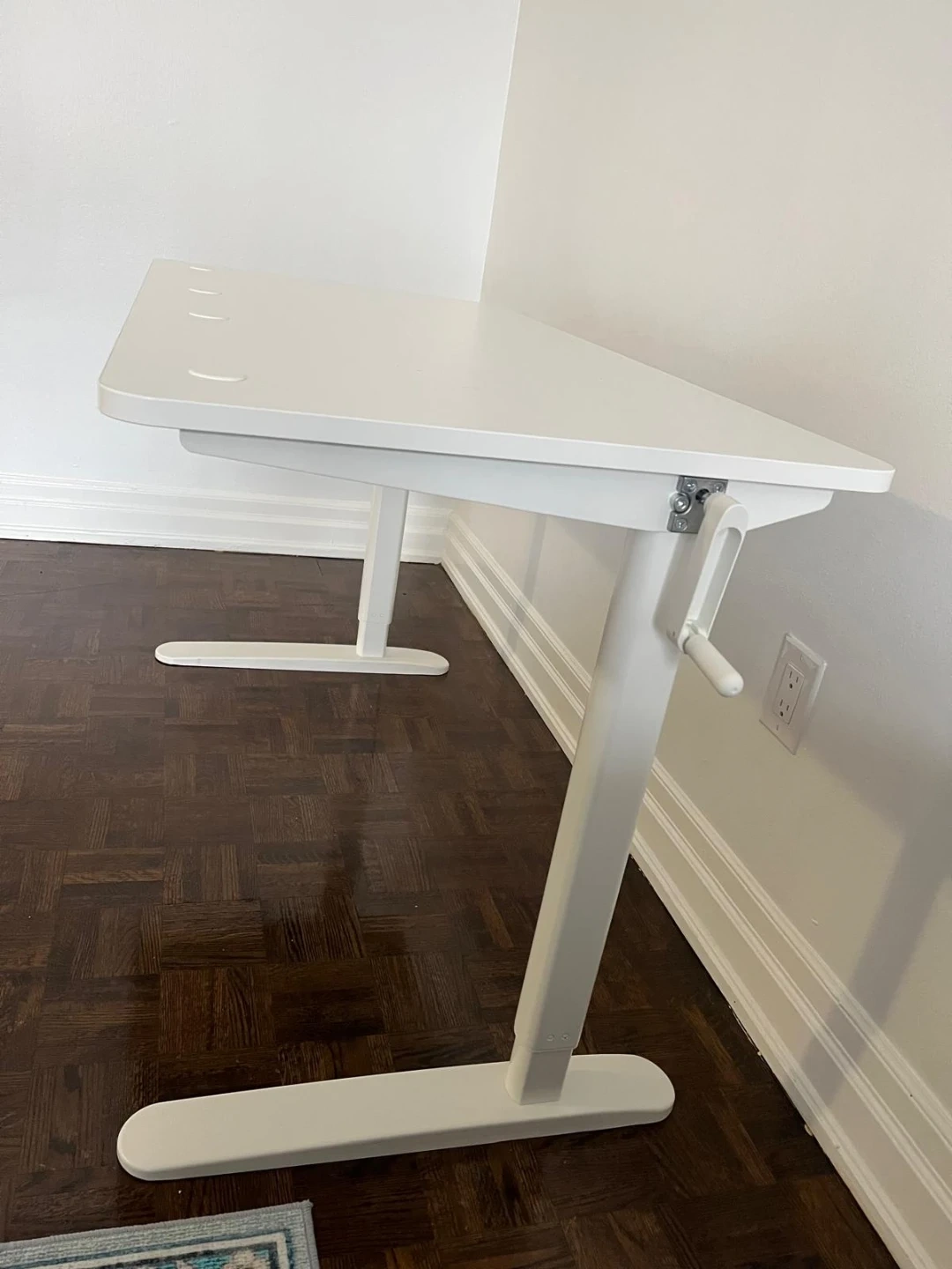 Selling a white IKEA Skarsta standing desk! It's in great condition and ready to help you work comfortably from home. The height is easily adjustable with a hand crank, so you can switch between sitting and standing throughout the day. Perfect for a home office or study space. 4 months old.