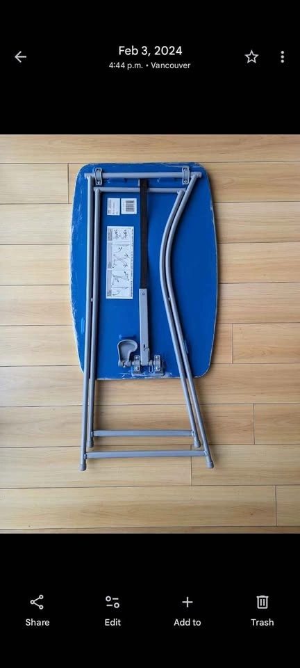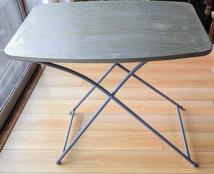 Sturdy COSCO folding portable activity table. Repainted metallic grey. Some minor surface marks from use, but fully solid and folds flat for storage. Great as a sewing, craft, or kids’ table. Stores flat.
